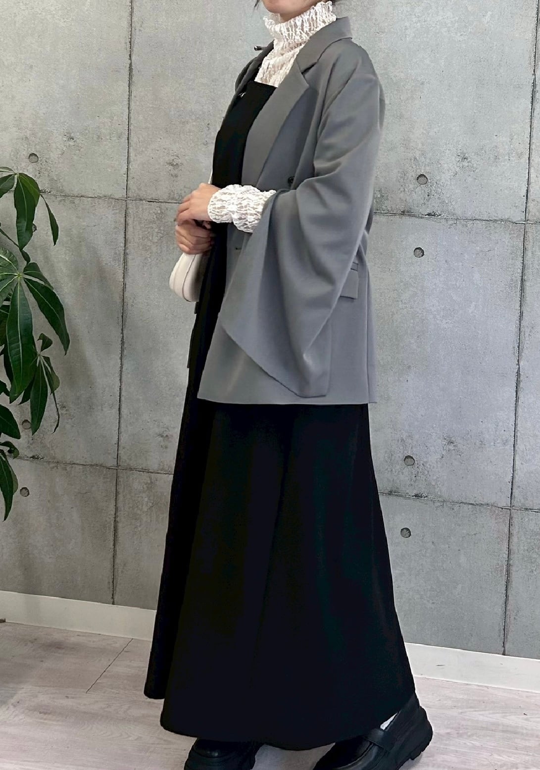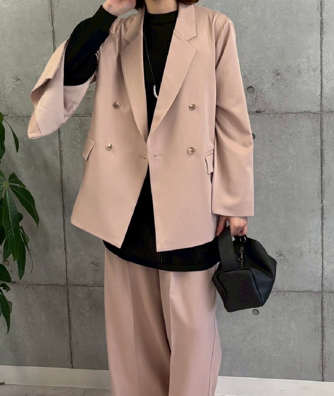 ドライタッチで程よいハリのある素材を使用したダブルジャケット。袖下にはコンシールファスナーを取り付けているので、開閉してスリットシルエットにすることも可能。程よくゆとりのあるサイズ感シルエットなので、インナーにTシャツを合わせたカジュアルスタイルもおすすめ。スーツ素材感の上質な素材感じにテーラードなのでちゃんとした感もありながらカジュアル崩しできます。オシャレでシーズンレスで幅広く着用できるおすすめアイテムです。