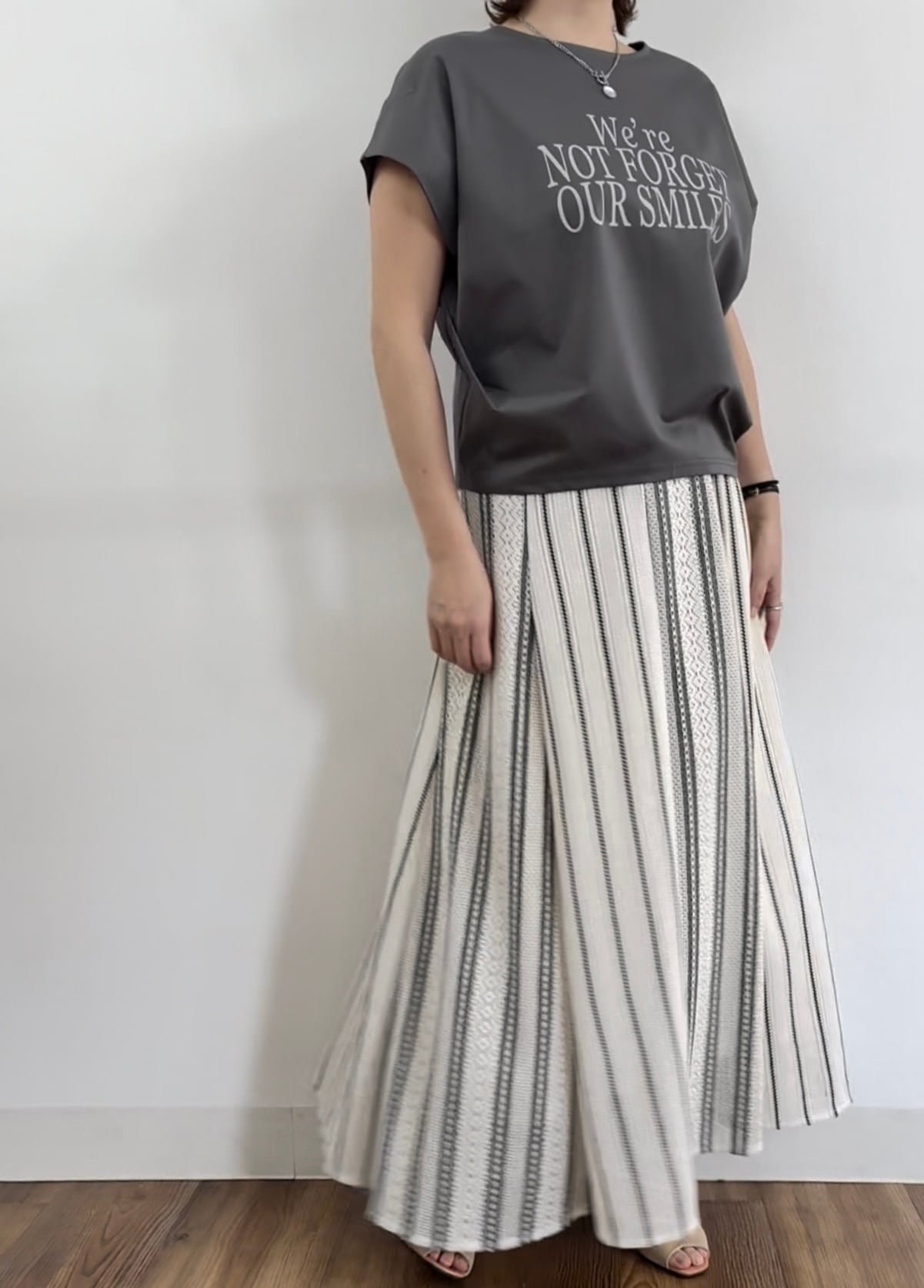 ● 綿シルケット加工による上品な光沢感が魅力Tシャツ✨ さらりとした肌触りでひんやり感もあり、心地良い着用感を提供します。ウエスト部分に施されたタックデザインは、お腹周りをさりげなくカバーし、スッキリとしたシルエットを演出。カジュアルにもフォーマルにも活躍する万能アイテムで、幅広いシーンでのコーディネートが可能です。洗練されたデザインはスタイリングの主役になり、シンプルながらも一味違った印象を与えます✨