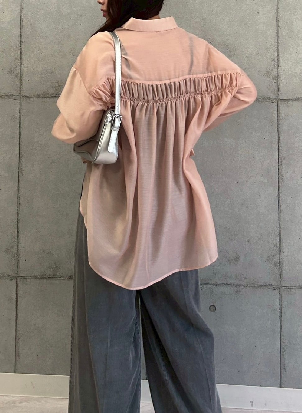 ●後ろシャーリングシアーブラウスは、華やかさとトレンドを取り入れたデザインが魅力の一着です。柔らかなシアー素材が軽やかな印象を与え、後ろのシャーリングディテールがアクセントになっています。透け感のある素材感は、特別な日のお出かけやデイリーファッションでも活躍すること間違いなしです!着心地も快適で、リラックスしたフィット感を楽しめるため、さまざまなスタイルに合わせやすいアイテムです✨