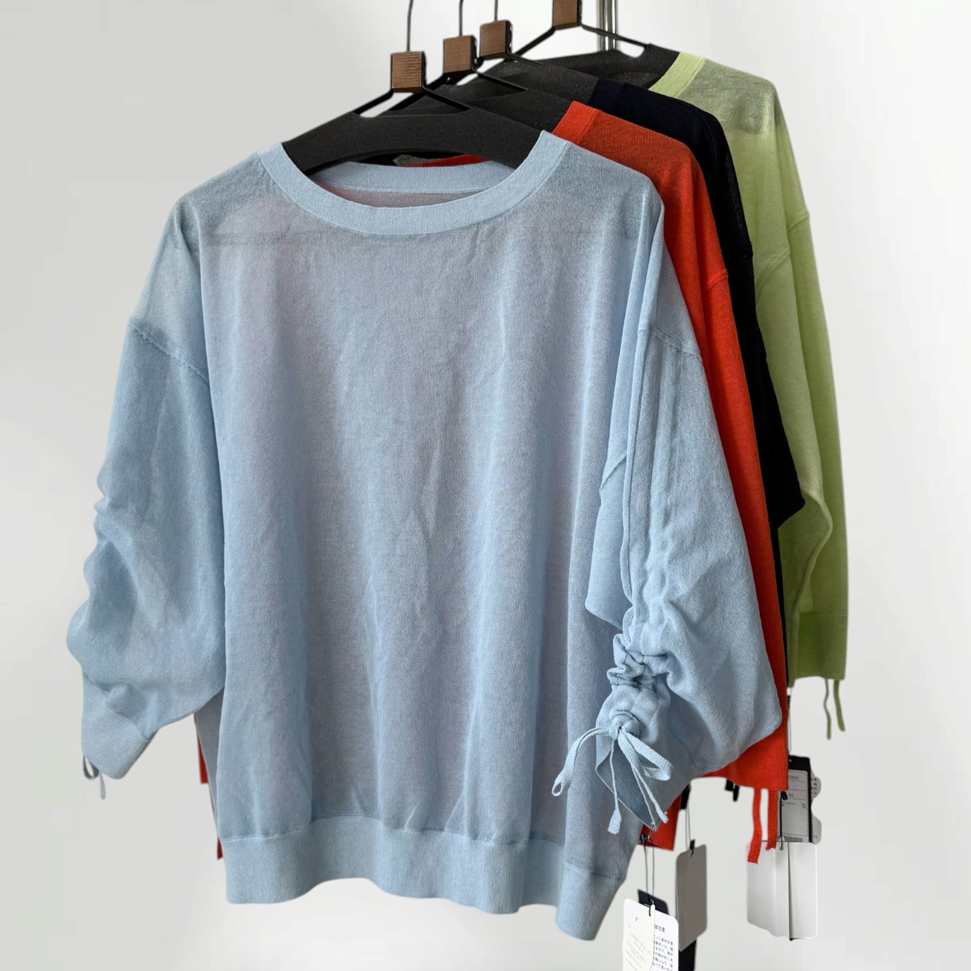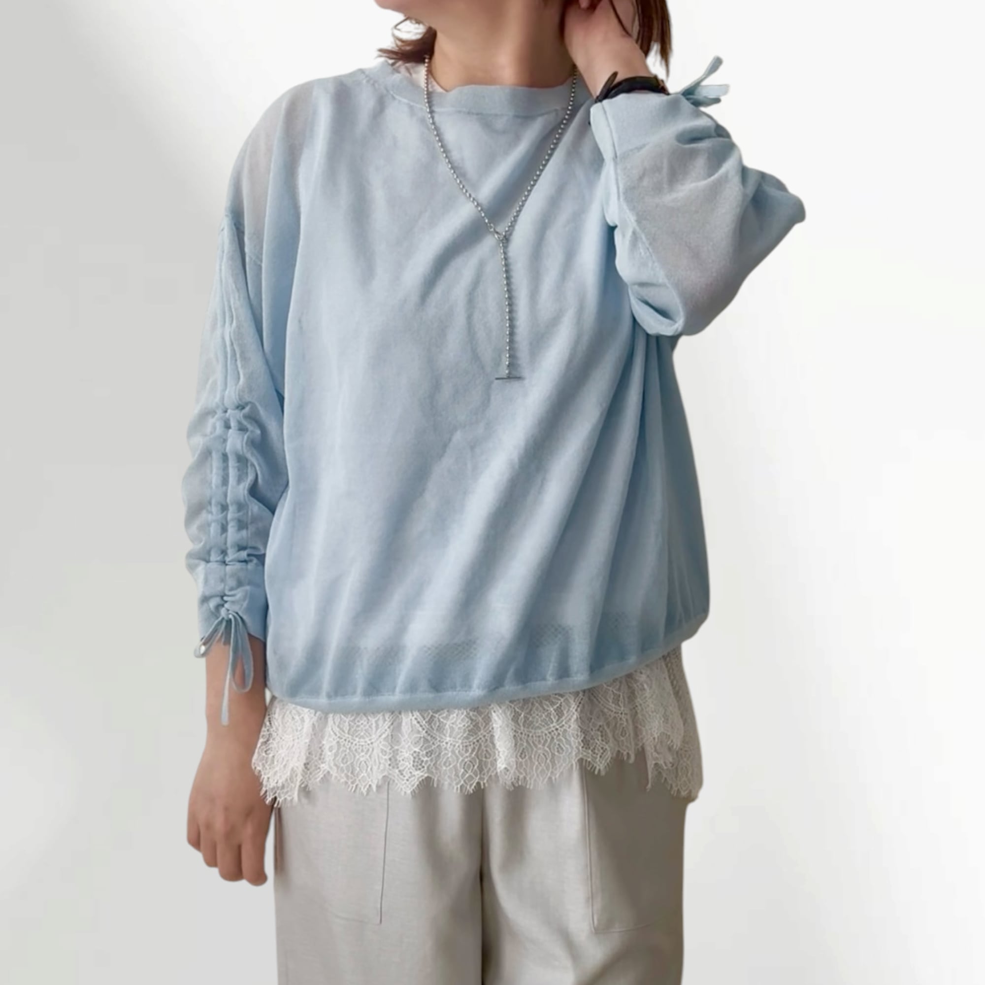 袖シャーリングサマーニットプルオーバー