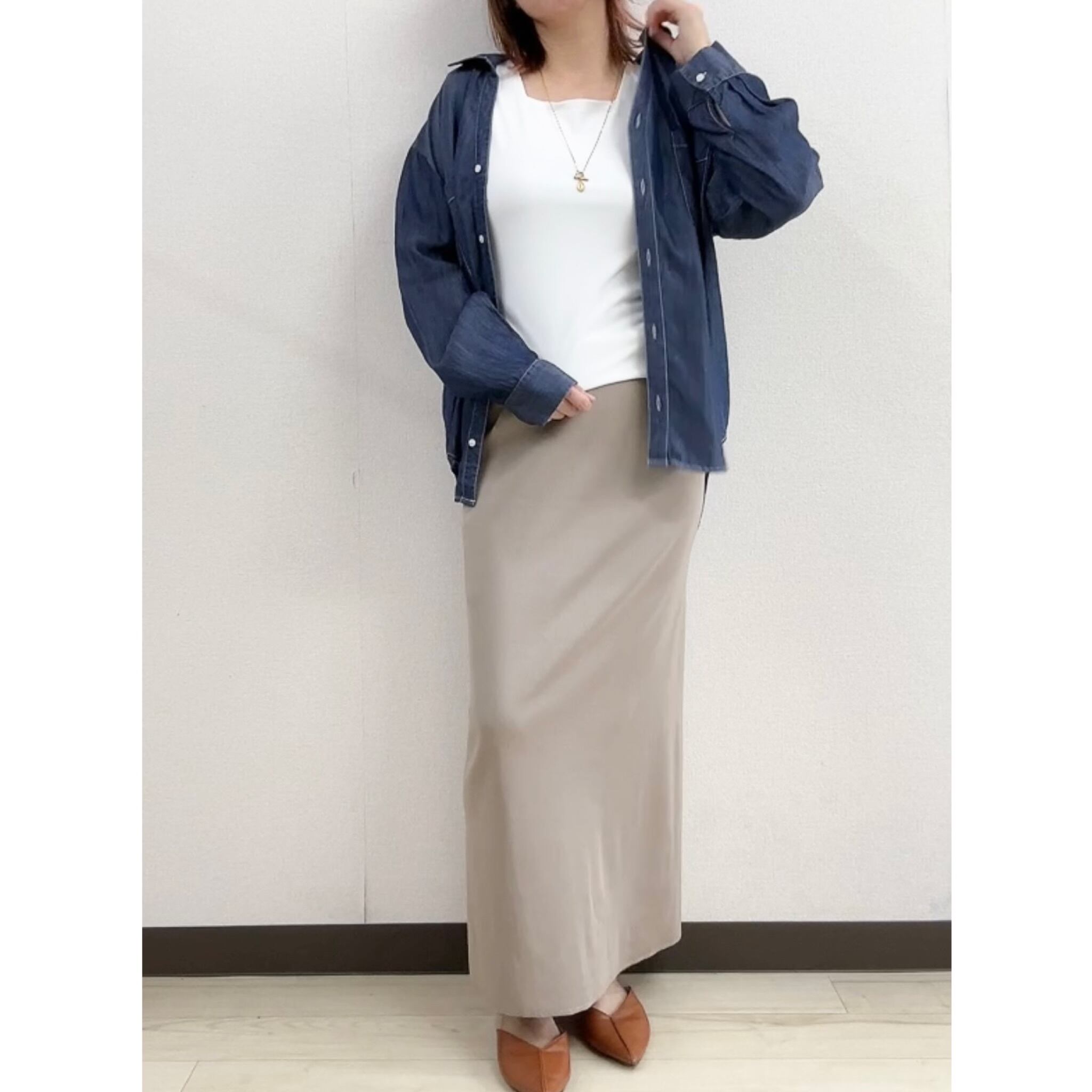 ●縦長のIラインが強調されるリブ生地のペンシルスカート✨シャリ感がある細いリブ生地と程よいタイトなシルエットが細見え相乗効果抜群。伸び良い生地でベンツ仕上げのスリットは脚が見えすぎず、足捌きも◎