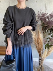 裾チュールドッキングニット