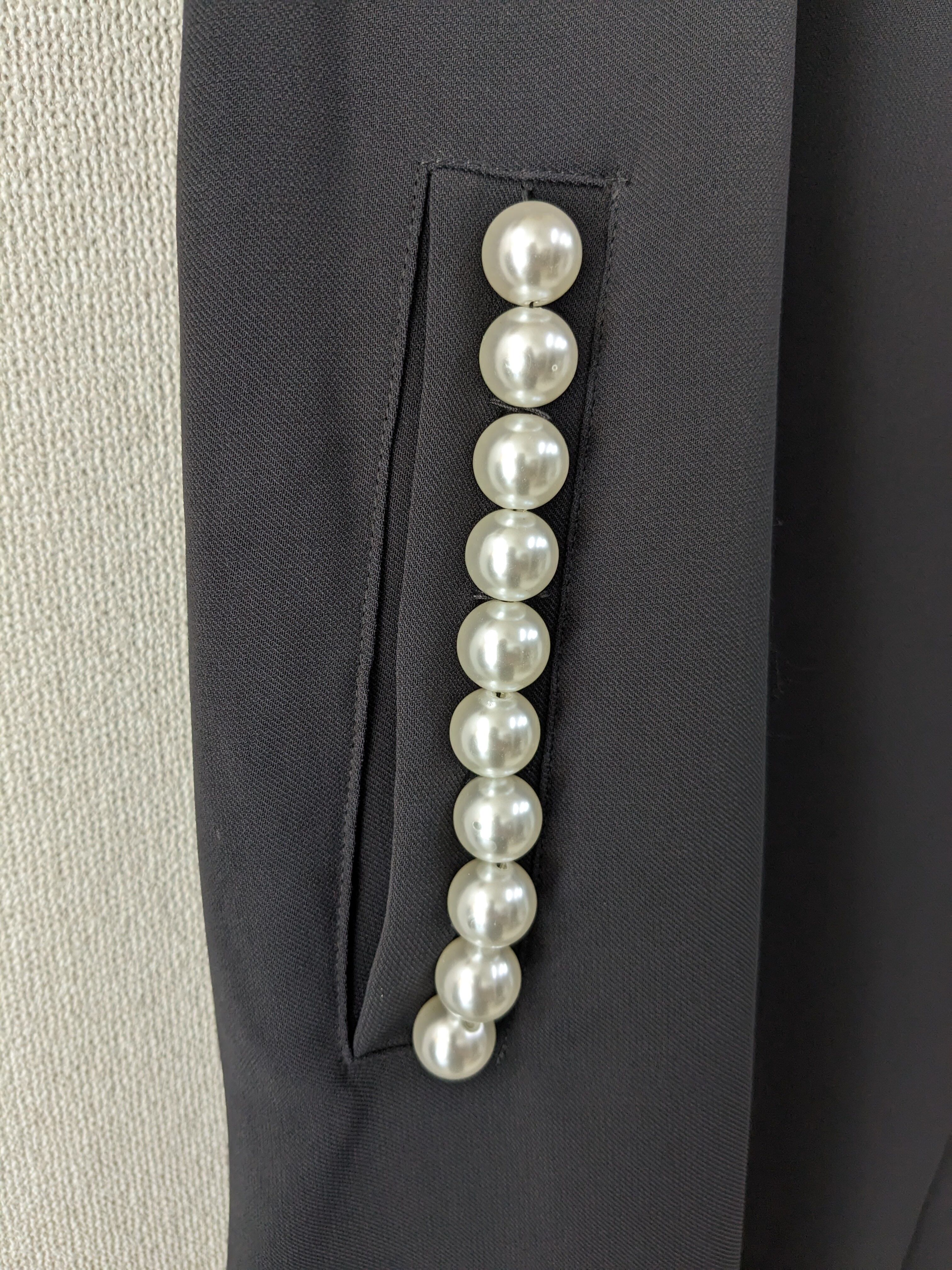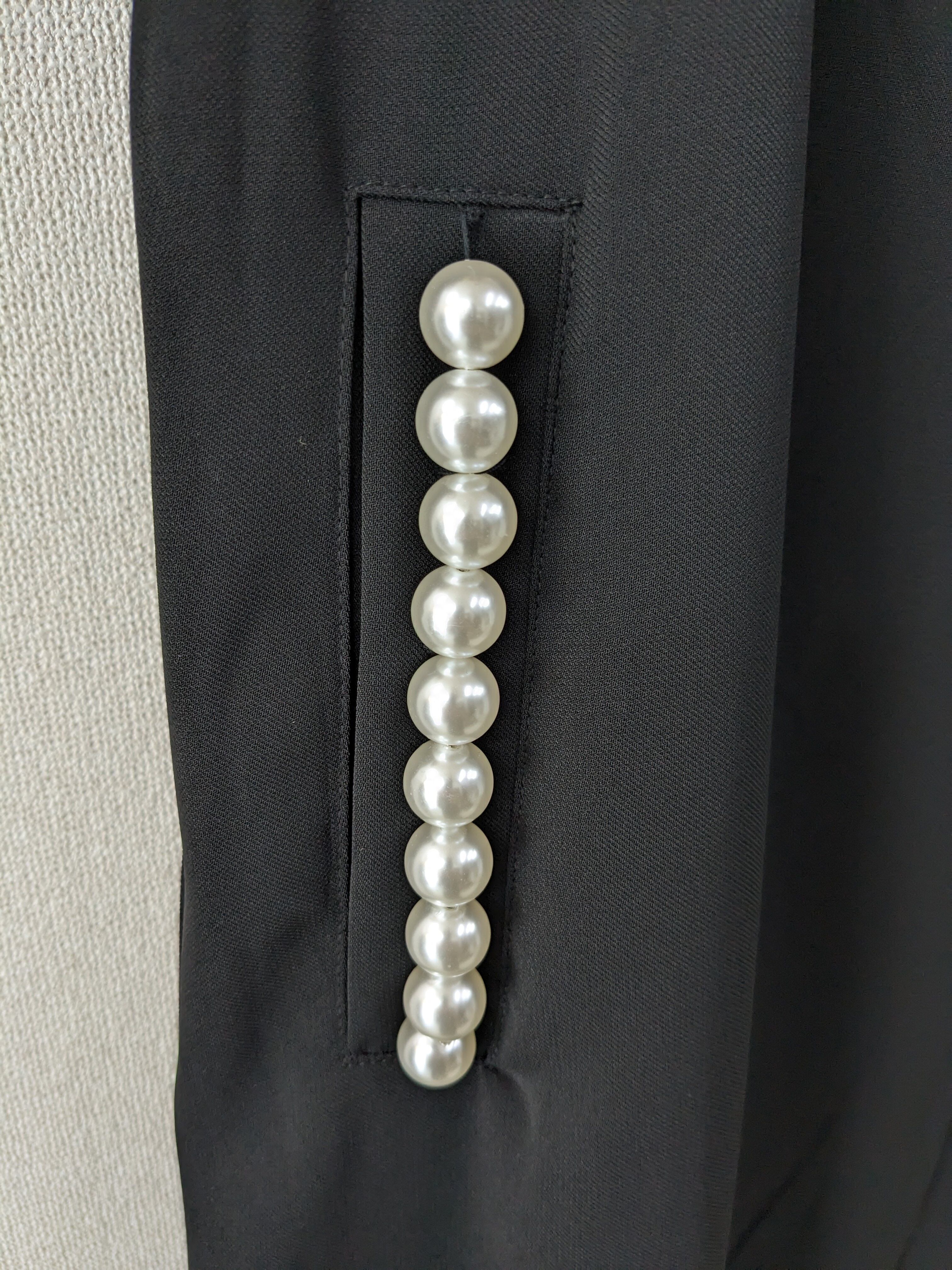 ●ポケット部分に女性らしさ引き立つパールデザイン、格好良く決まるテーラードスタイルの魅力が詰まったロングジレ✨とろりとドレープ感があり綺麗なシルエット。さらりと羽織ってコーディネートが決まるので大活躍間違いなしです♡