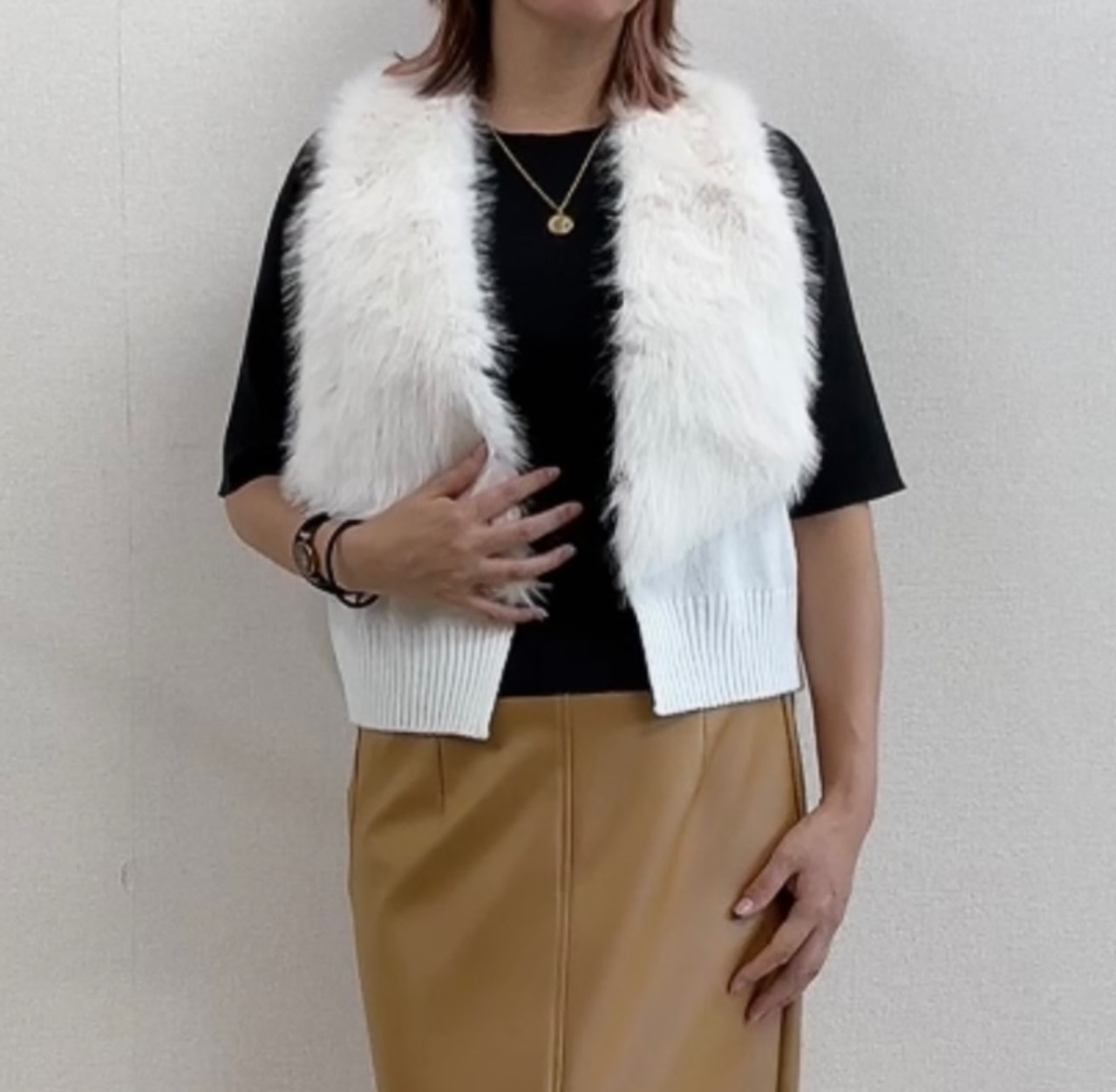 ●エコファーニットベストは、暖かくて可愛らしいアイテムです。秋にサラッと羽織るだけでもおしゃれに決まり、冬の寒い日にはジャケットのインナーとして、暖かさをプラスしてくれてコーディネートの幅も広がります。あなたのおしゃれなスタイルをさらに引き立てること間違いなしです✨
