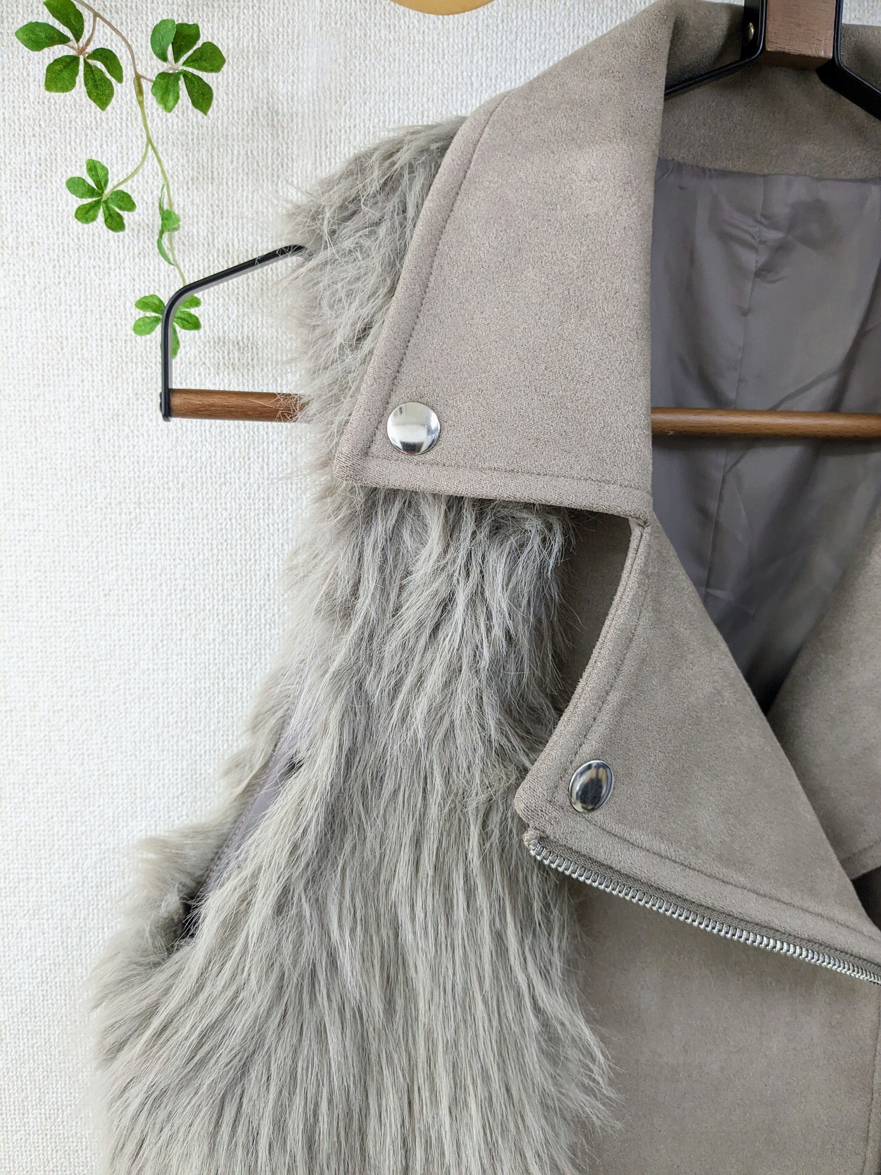 スウェード風素材のライダースデザイン+毛足があるエコファーはコーディネートの主役は勿論、暖かさをプラスしてくれるアイテム。スタンダードなコーディネートのプラスにオススメ✔