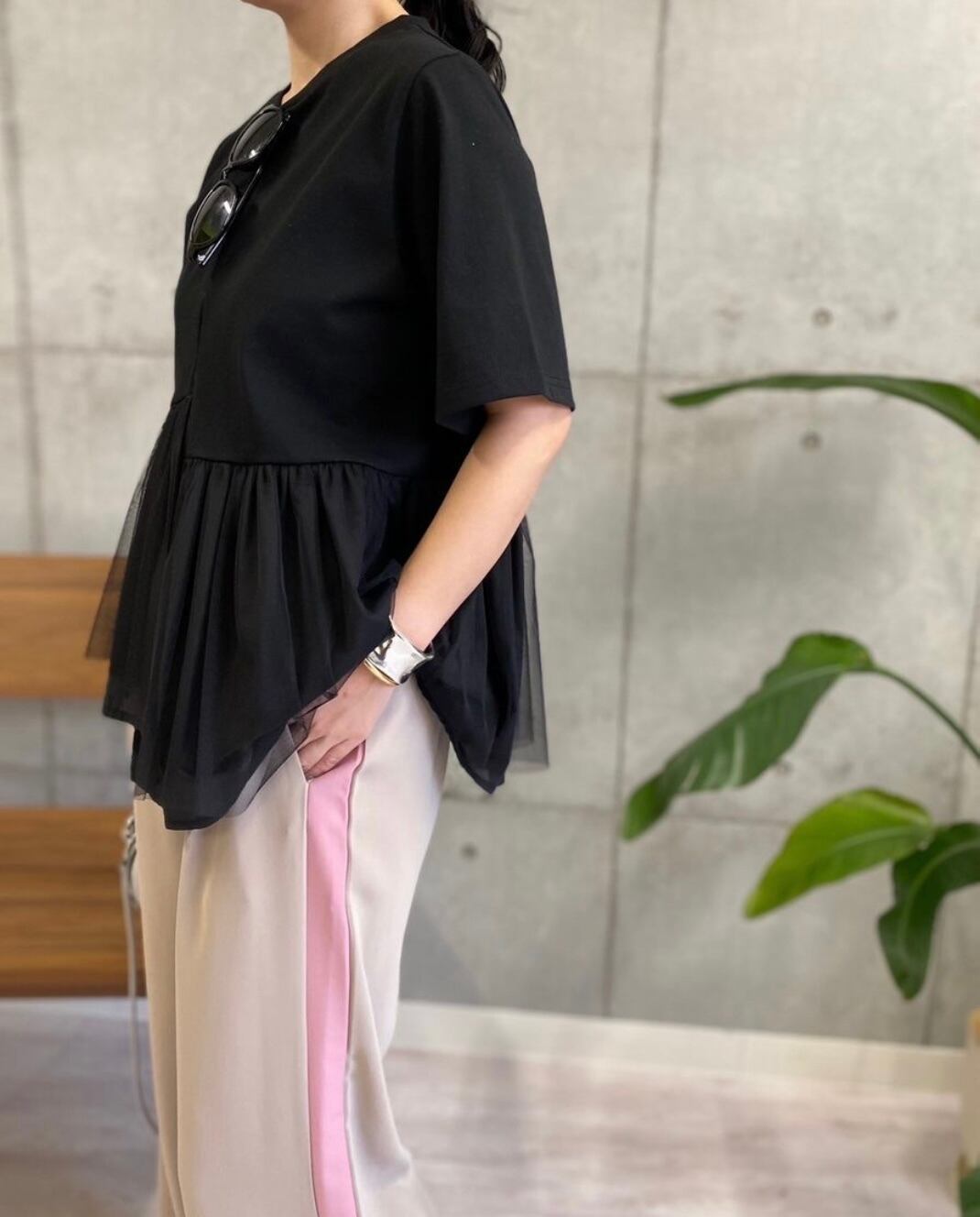 ●アンバランスなアシメデザインがおしゃれなチュールトップス。一枚で存在感たっぷりのコーディネートが完成します。シンプルなトップスに一工夫加えたい方におすすめです。