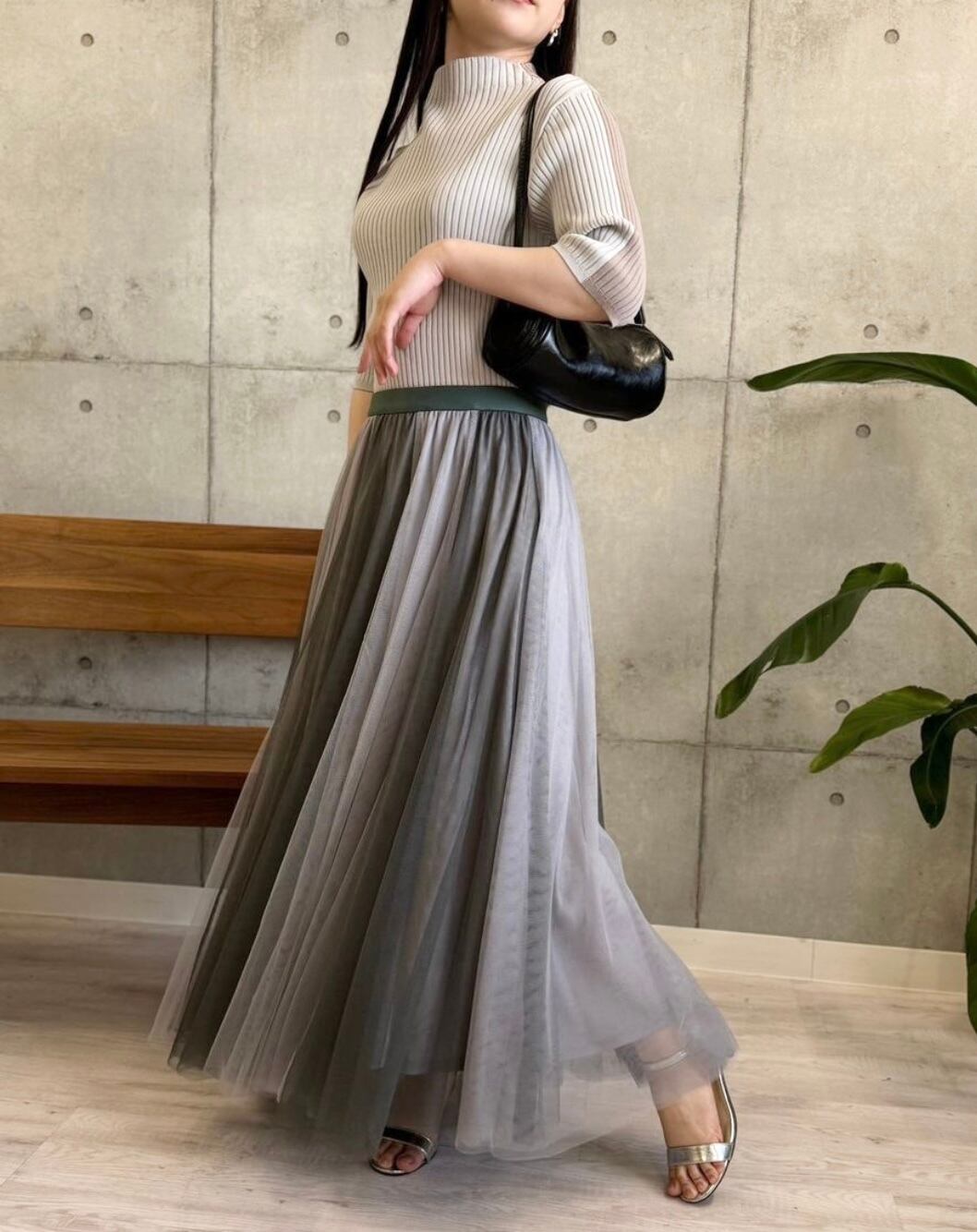 ●デザイン性豊かな配色チュールスカートが新登場!軽やかな素材感と華やかな色使いで、どんなコーディネートにも映える一枚です。立体感のあるチュールが動くたびに揺れ、女性らしさを引き立てます。ウエストはゴム仕様で楽ちんな着心地も魅力の一つ。
