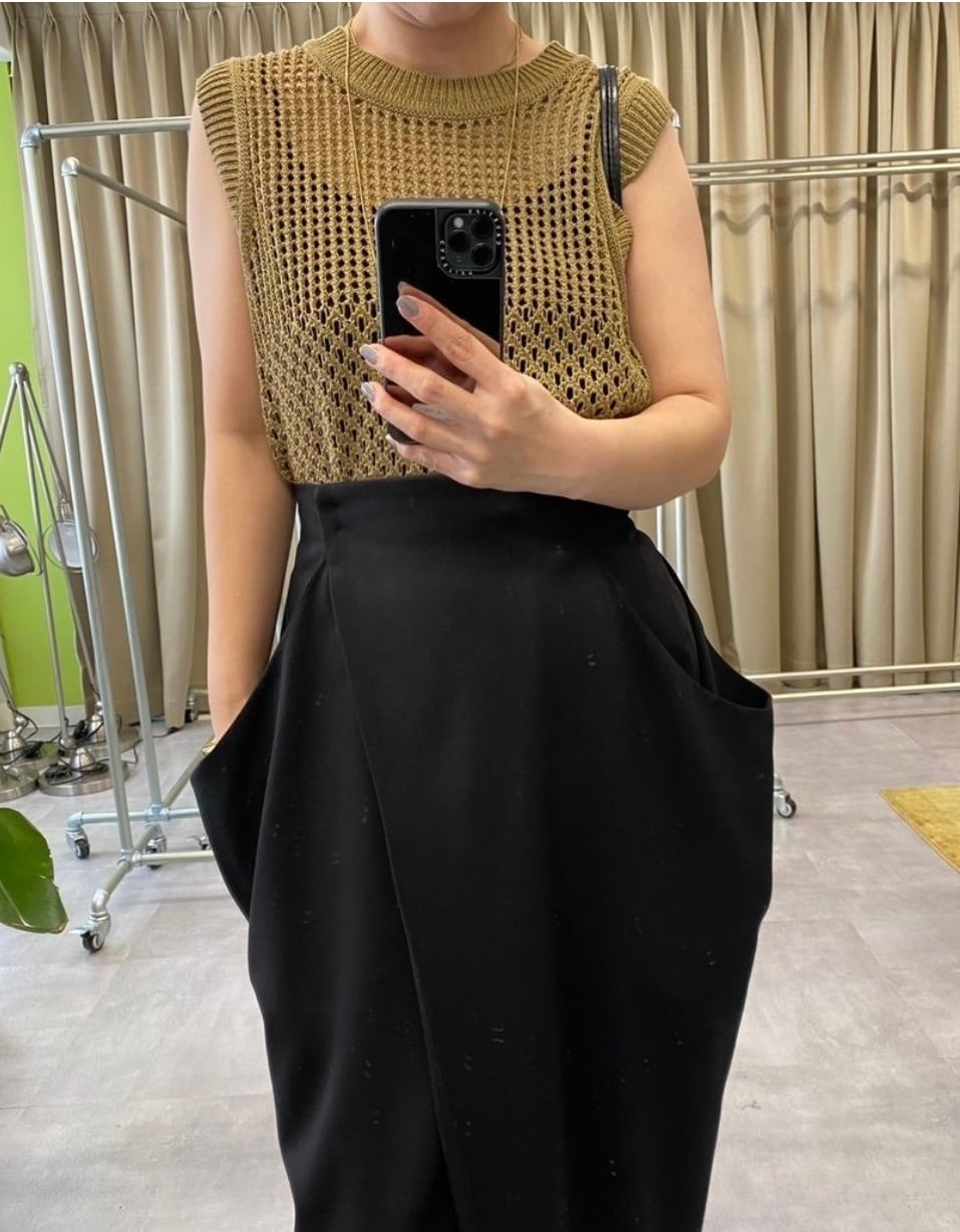 ●バックボタンかぎ編みニットは、シンプルながらも個性を演出できる一枚です。後ろ姿に特徴的なボタンデザインが施されており、着るだけでおしゃれ度がアップします。裾や袖にかけての編み模様も、細やかなディテールが魅力的。