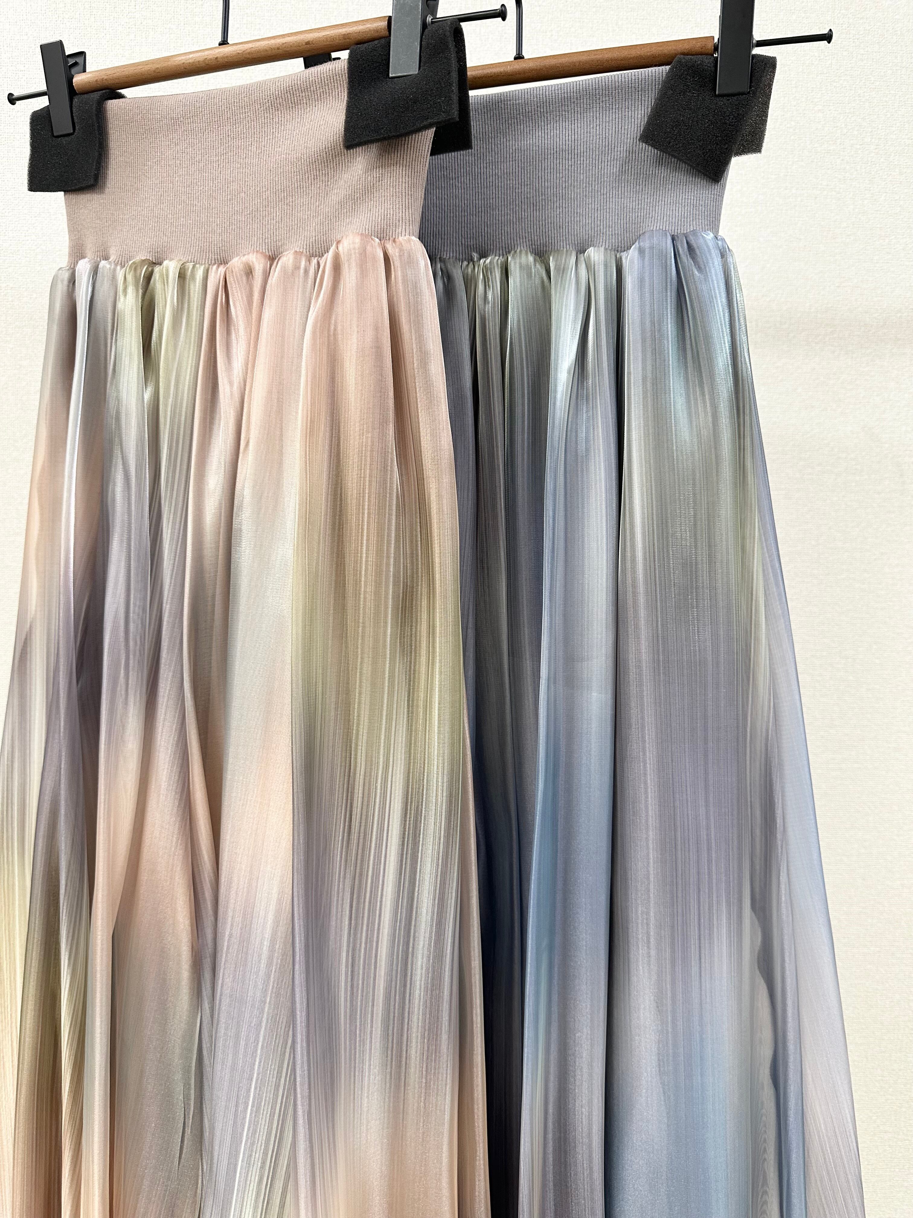 ●オーロラのような優しいカラーのフレアスカート。ほんのり光沢感もあり動くとキレイな色を奏でます✨落ち感もありヒップ部分は落ちフレアになり過ぎない形も嬉しいシルエットです。