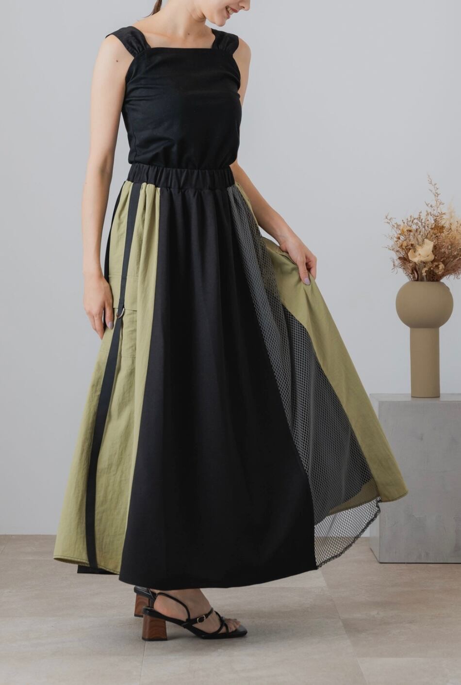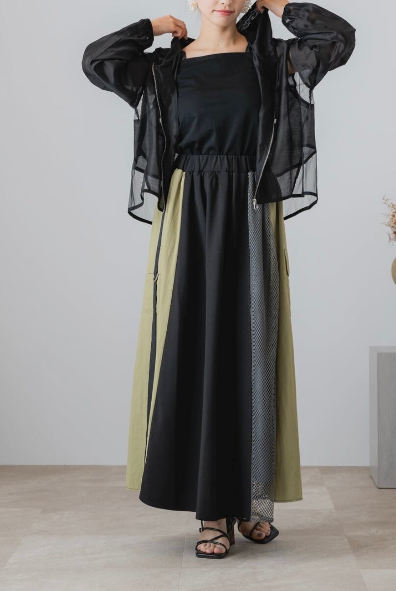 異素材メッシュ切替スカート