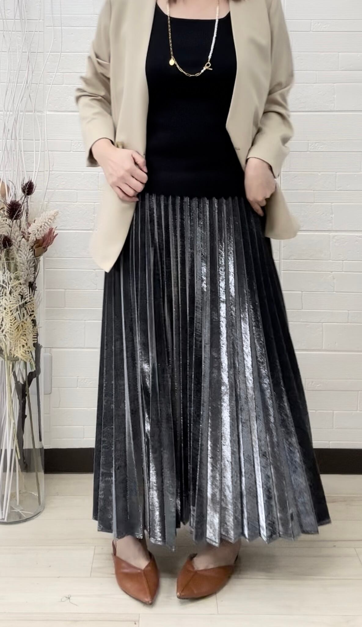 ● 華やかなグリッタープリーツスカートが登場しました!キラキラと輝くグリッターはプリーツデザインが動くたびに揺れ、女性らしいエレガントな魅力を放ちます。シンプルなトップスと合わせるだけで、一気におしゃれ度がアップします✨