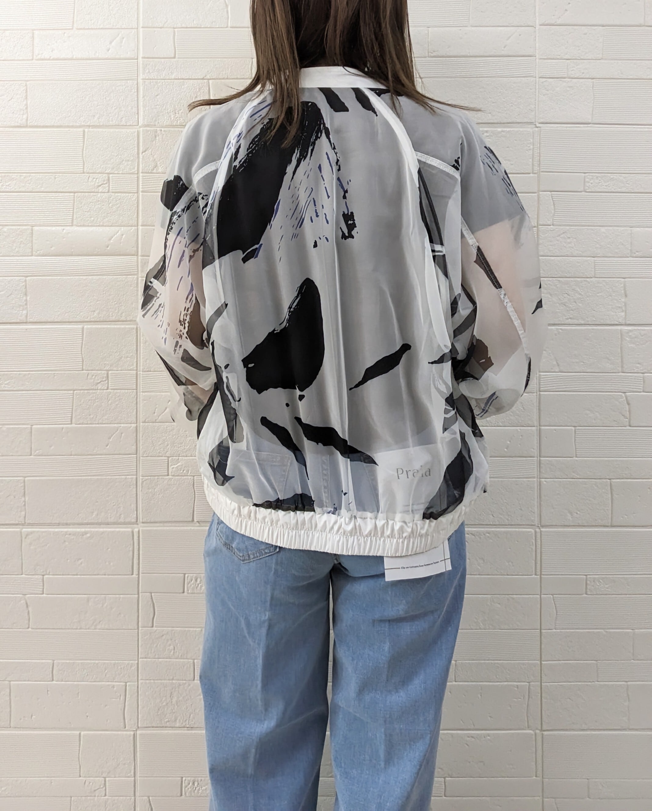 ●ニュアンスペイントが目を惹きつける主役シアーブルゾン✨さらりとした程よい透け感でマットな素材なので透け感も程よく、春のアイテムと相性◎シワになりにくく、軽量なので体温調整に困った時は優秀。