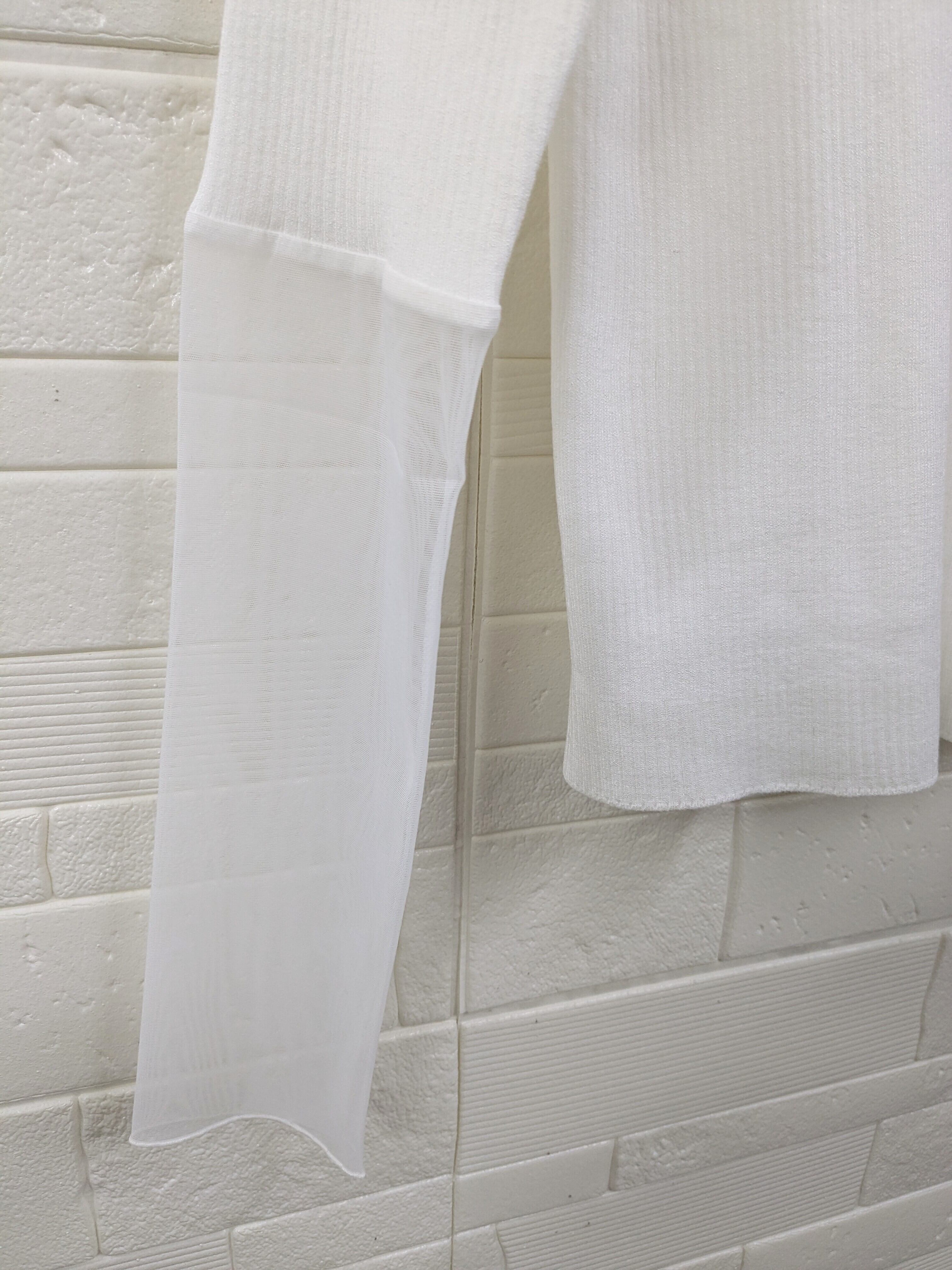 首元、袖には柔らかいシアーでトップスとしたはもちろん、インナーとして着用も可能。