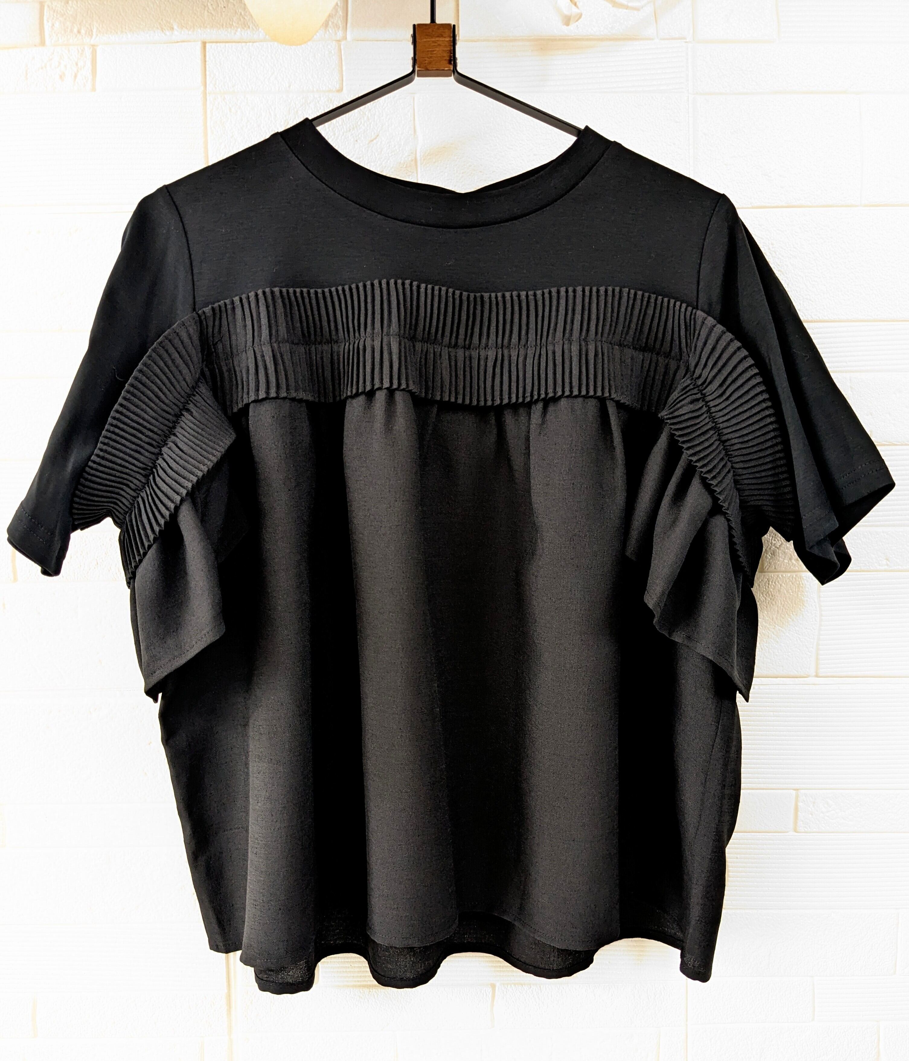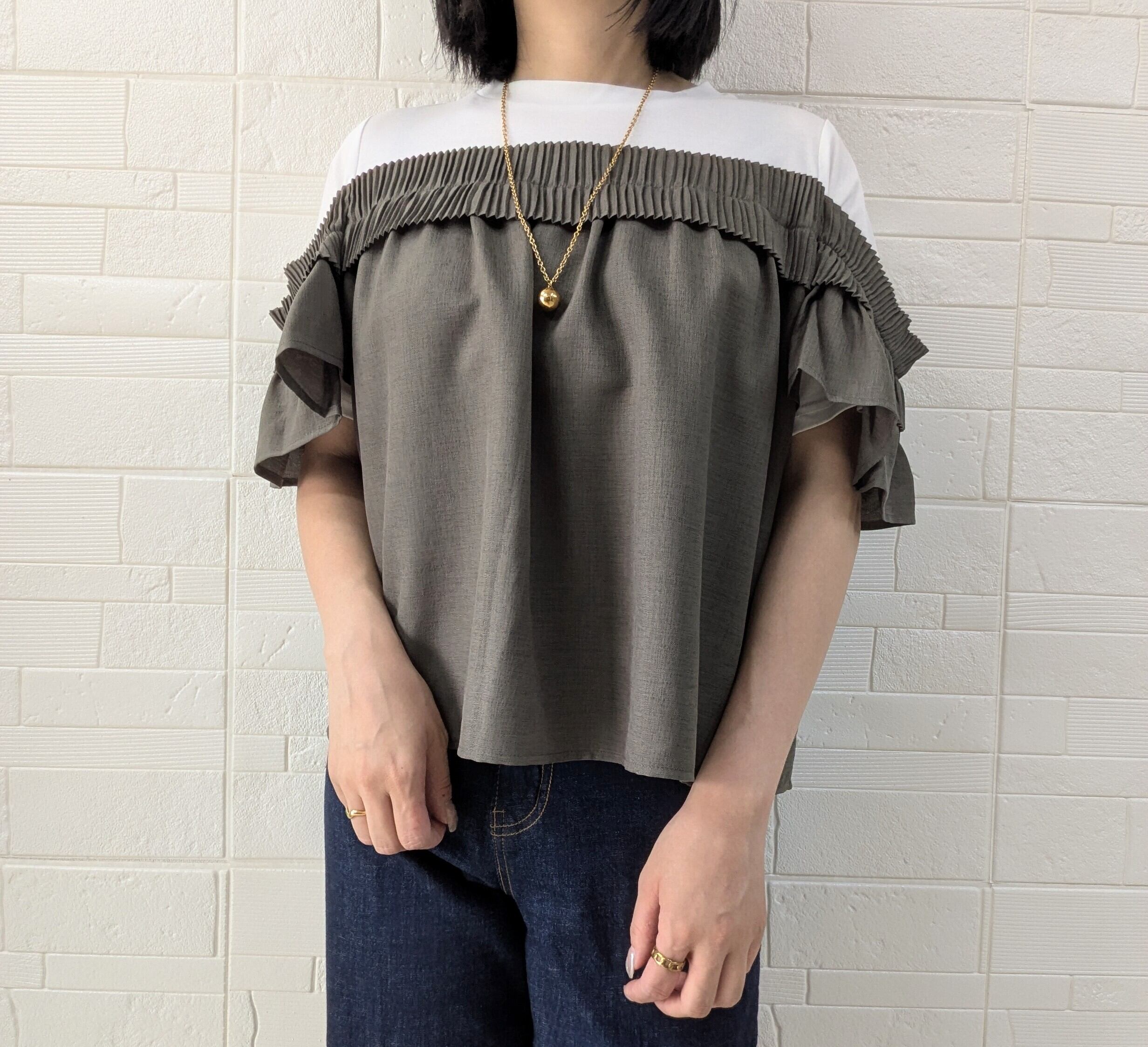 腕を通してオフショルダー風に、腕を抜いてビスチェ風にも着こなし楽しめる2way仕様。シワになりにくい素材で大人可愛いが詰まった1枚。