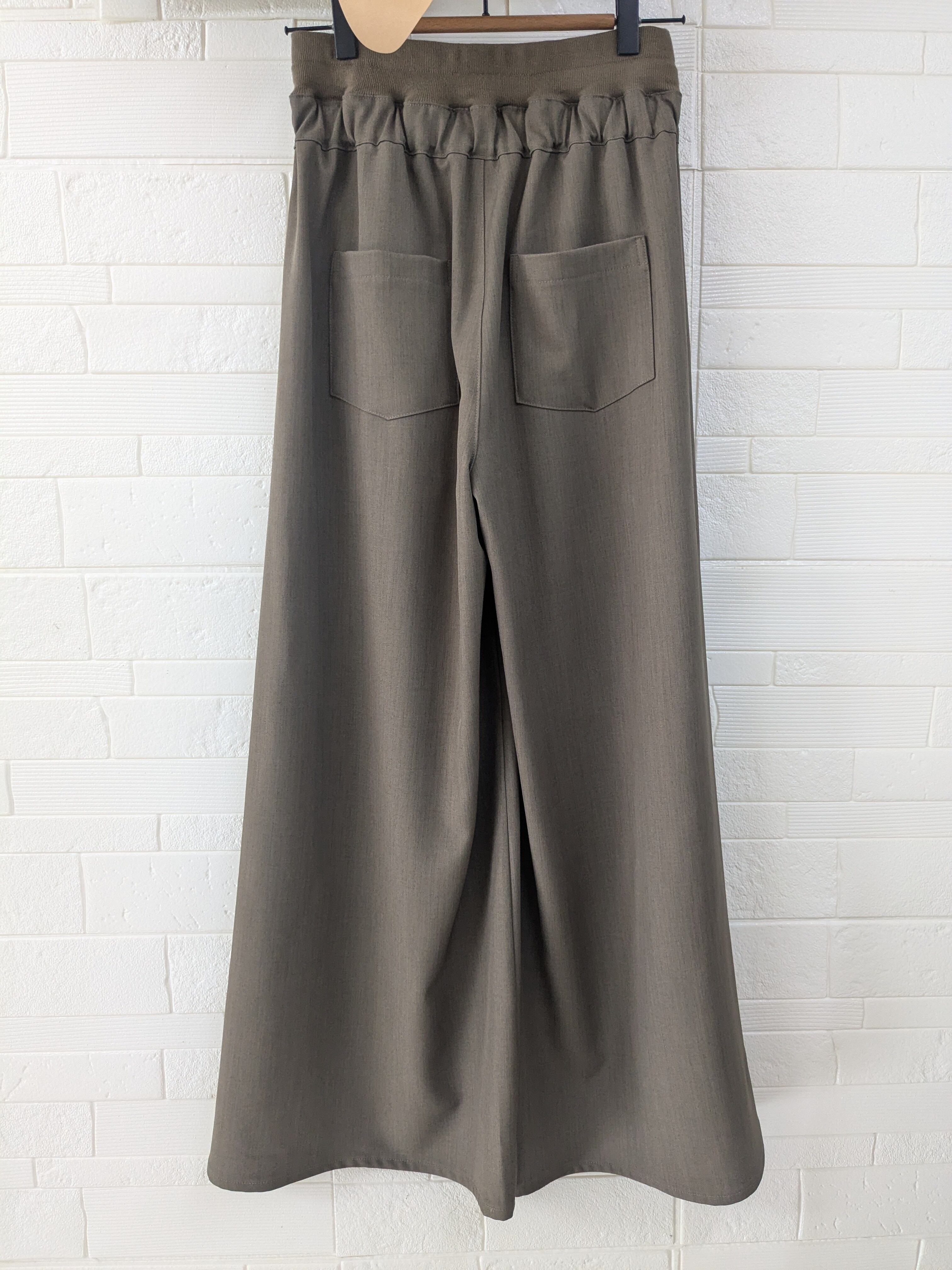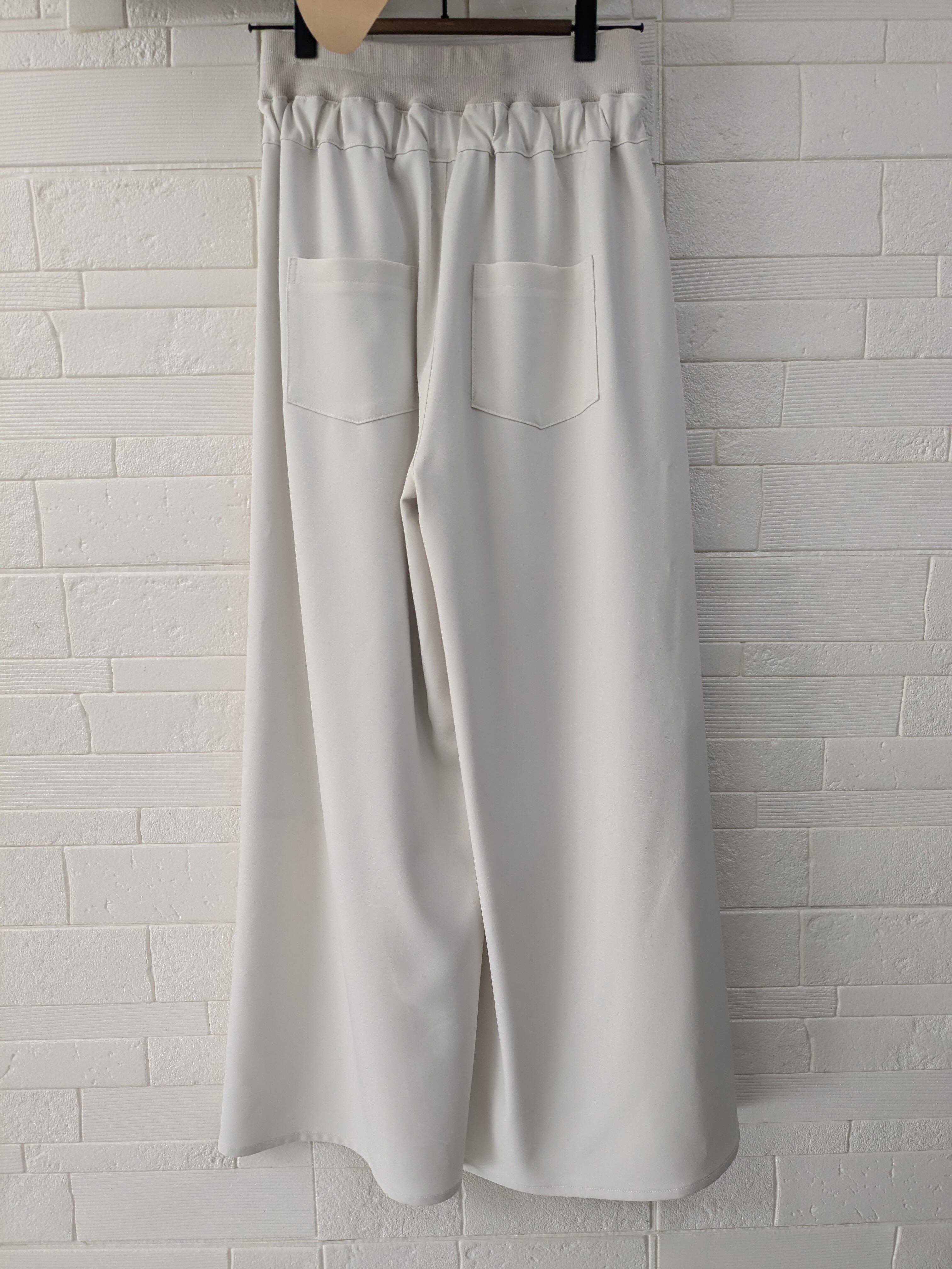 ●ダブルウエストデザインが特徴のワイドパンツです。ウエスト部分のデザインが絶妙なフィット感を実現し、スタイリッシュなシルエットを作り出します。ゆったりとしたワイドパンツは、リラックスした着心地を提供しつつ、カジュアルにもきれいめにも合わせやすいアイテムです。