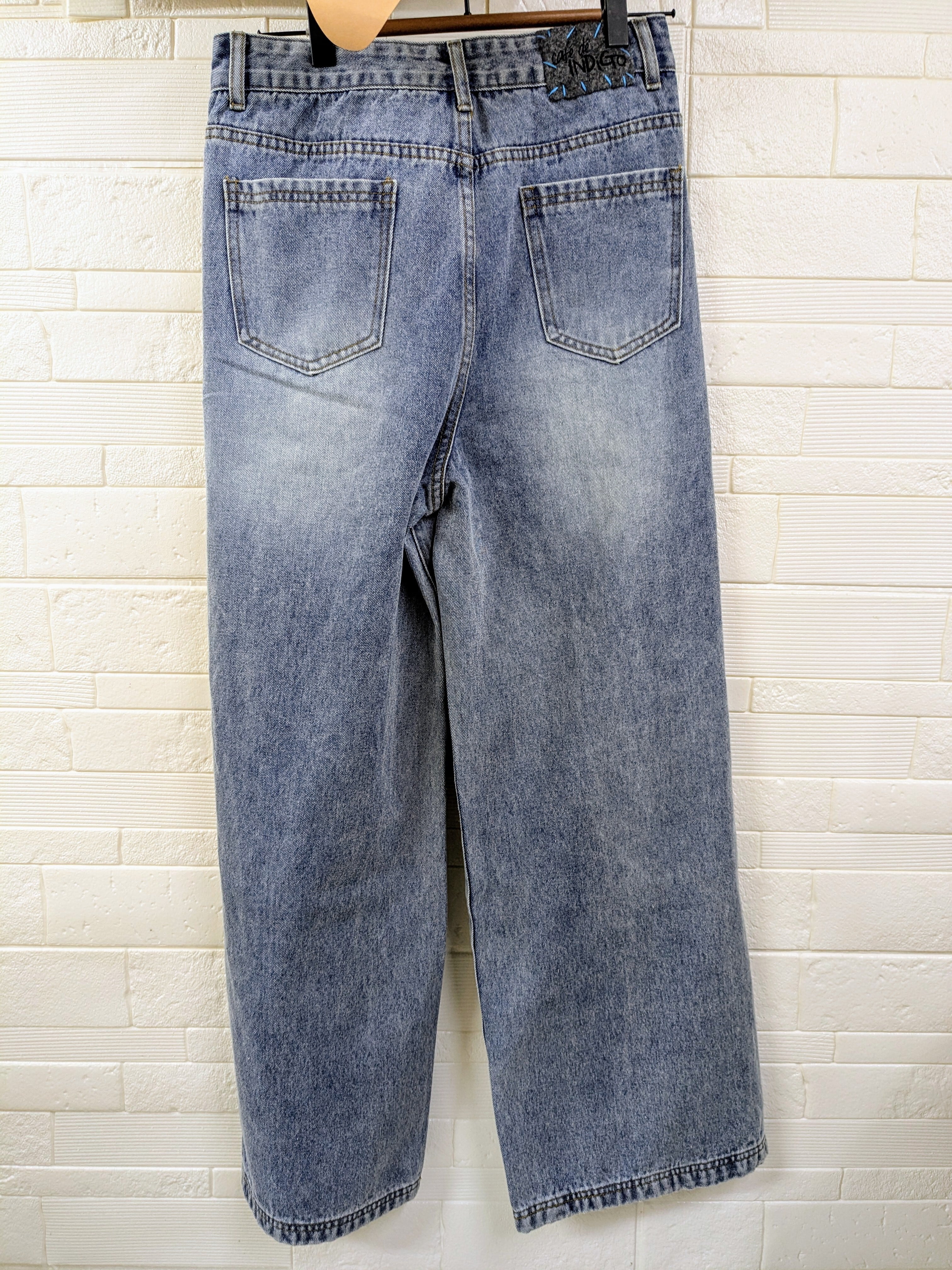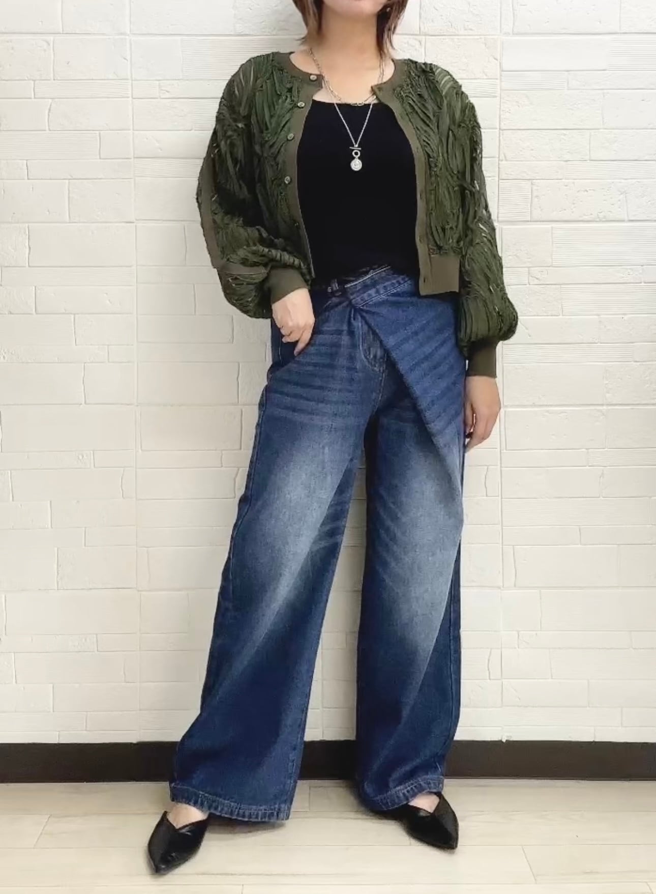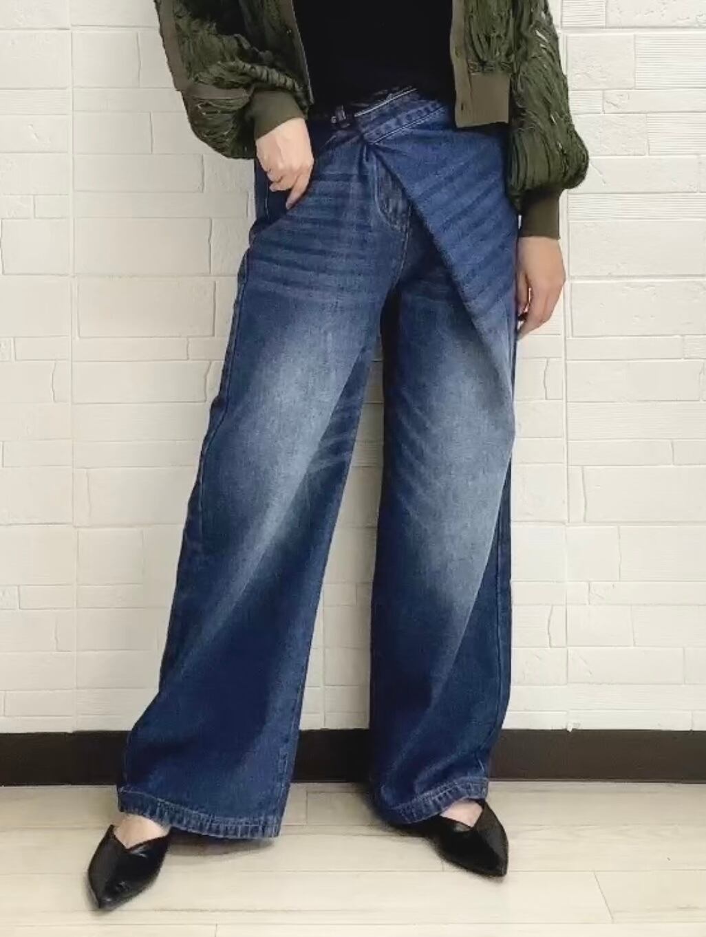 ●アシンメトリーになったラップデザインデニムパンツ✨柔らかめでセミワイドなストレートシルエット。
