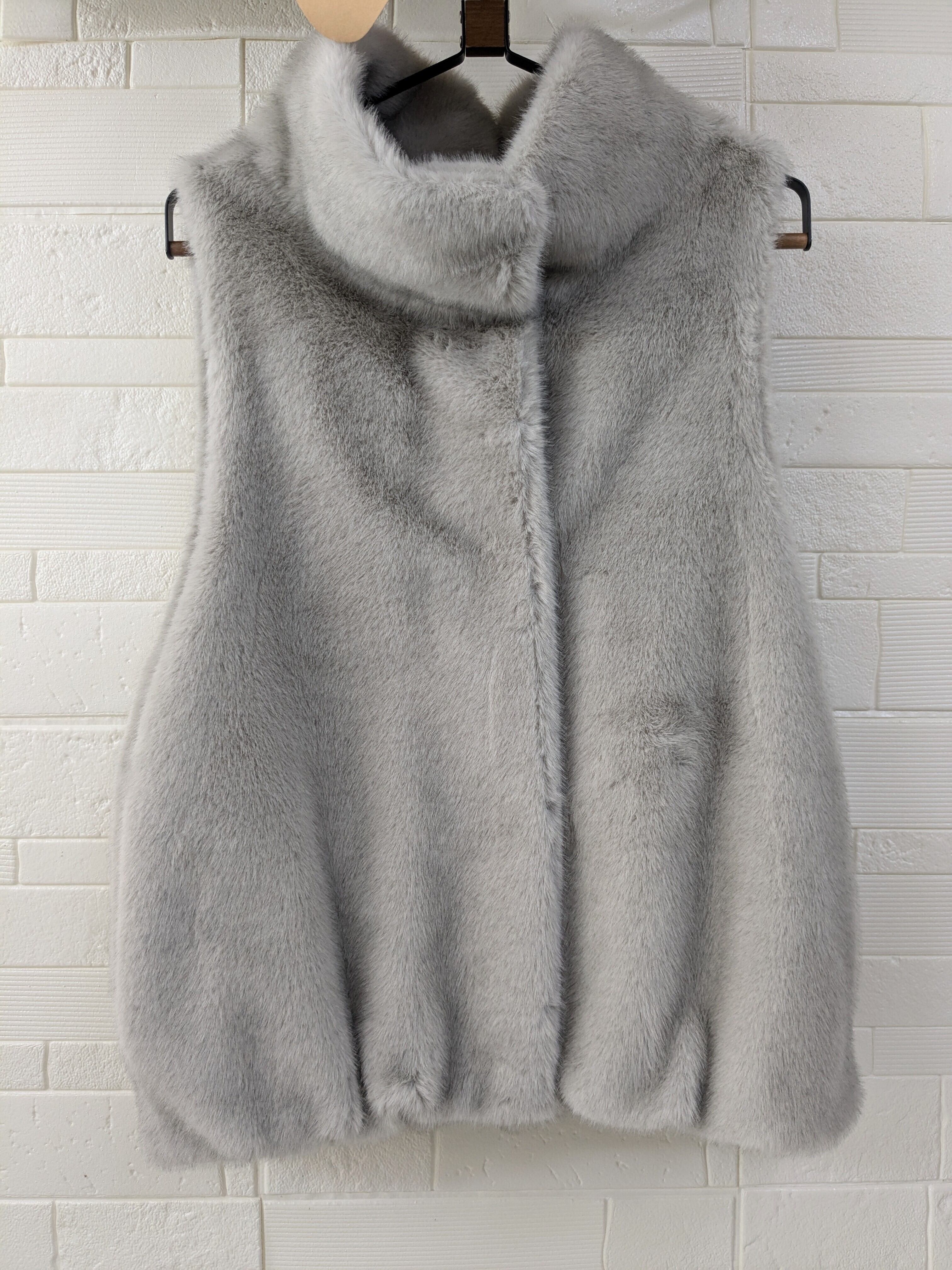 ●リアルに劣らない!上質で高級感があるミンク調エコファーベスト。ずっと触っていたくなる肌触り。