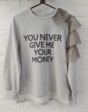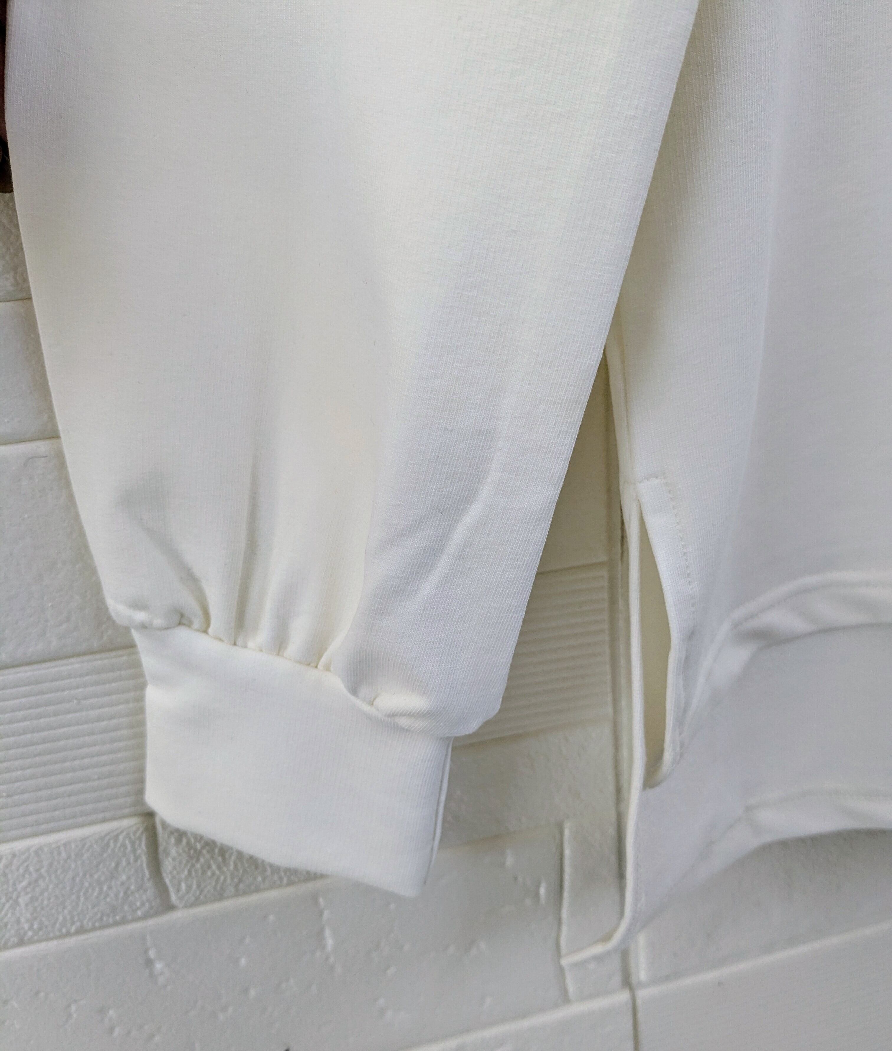 ミニ裏毛で薄めのトレーナーなので柔らかく、サラリと着用可能。絶妙な色合いのロゴプリントが甘くなりすぎず、大人カジュアルなスタイルに。