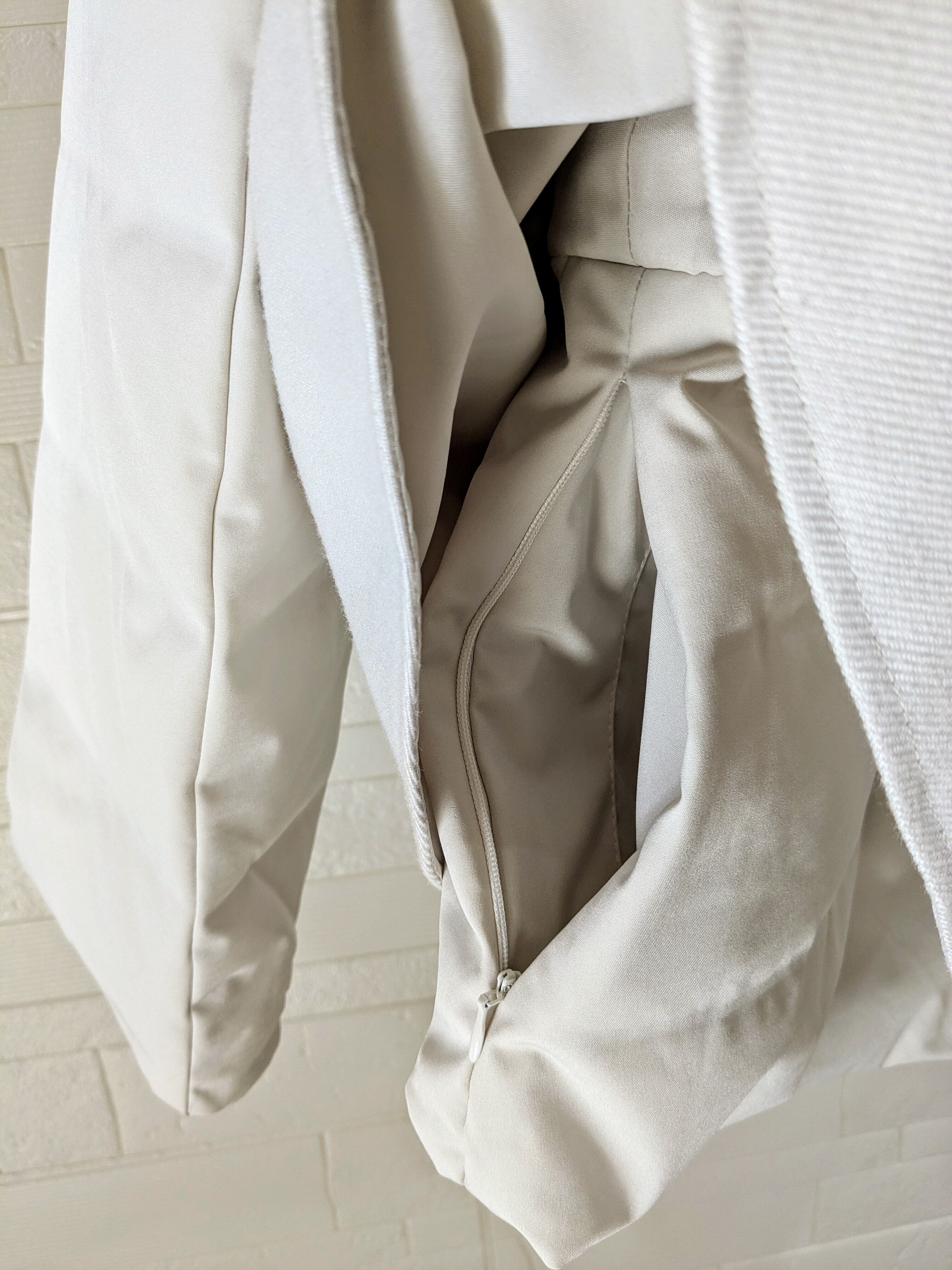くびれを作ってくれるシルエットで軽くて暖かく、ペプラムの中にはしっかりとポケットが付いてデザインと機能性を兼ね備えています。