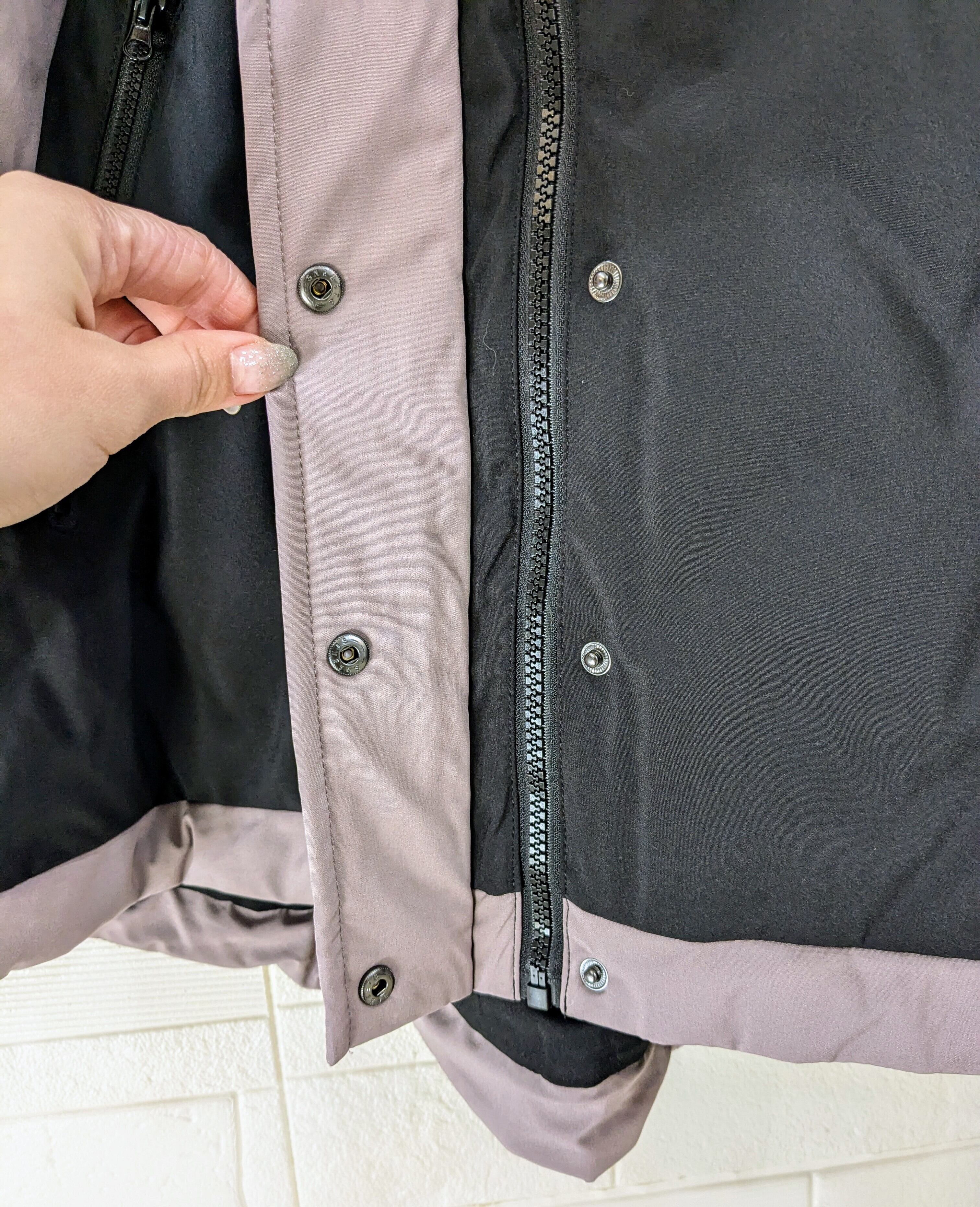 ●暗くなりがちな冬のアウターですが、こちらはカラー使いがクールでオシャレなダウンコート✨