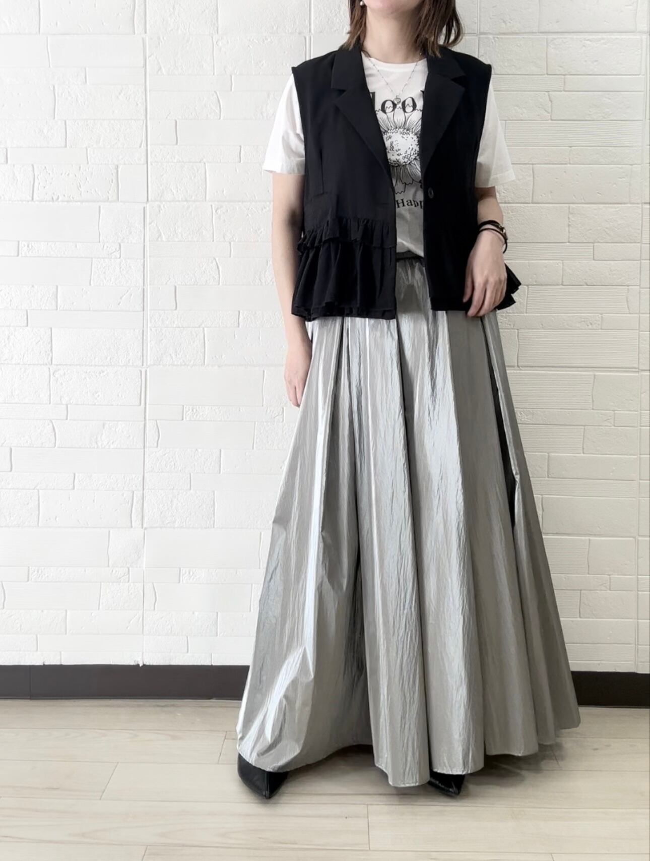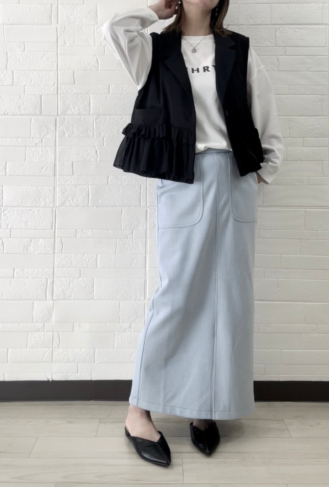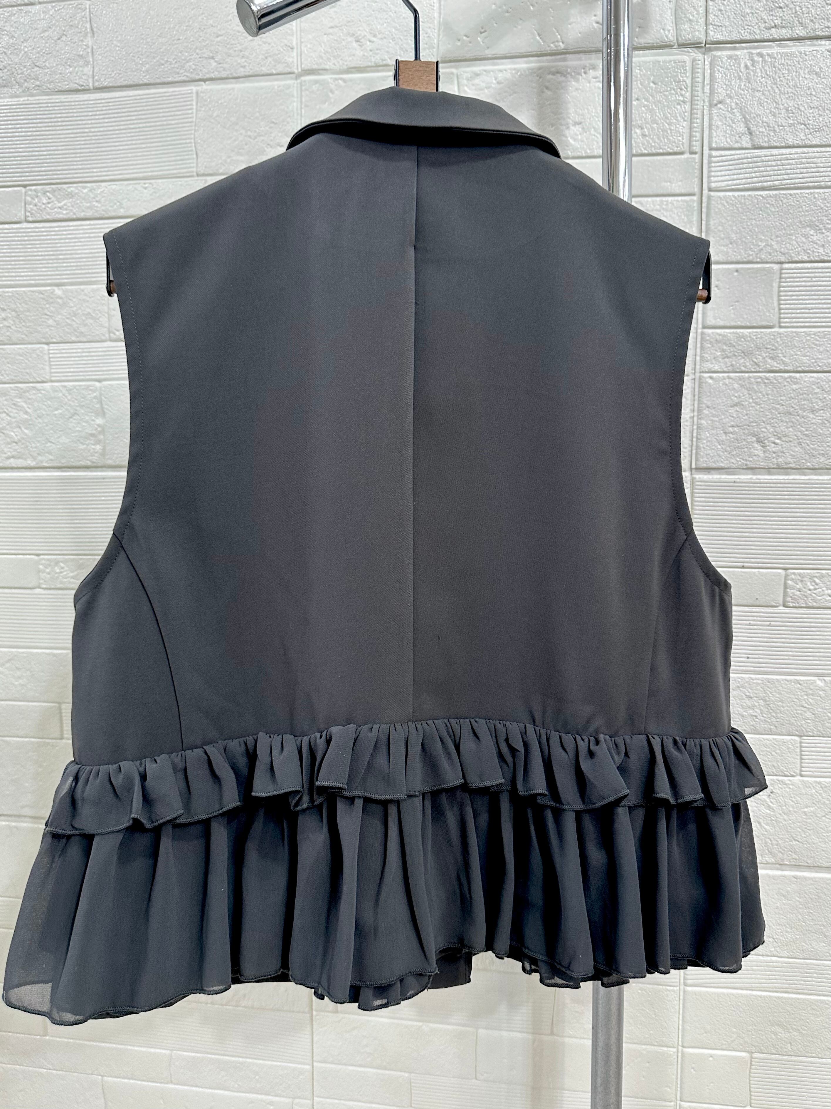● ショートフリルジレは、フェミニンでありながら洗練されたデザインが魅力のアイテムです!裾に柔らかなフリルが施されており、動くたびにさりげなく揺れる様子が大人の女性らしさを引き立てます。シンプルなトップスと合わせるだけで華やかな印象になり、また、カーディガン代わりの軽やかな羽織りとしても大活躍。特別な日からオフィスカジュアルまで幅広いシーンでお使いいただけます✨