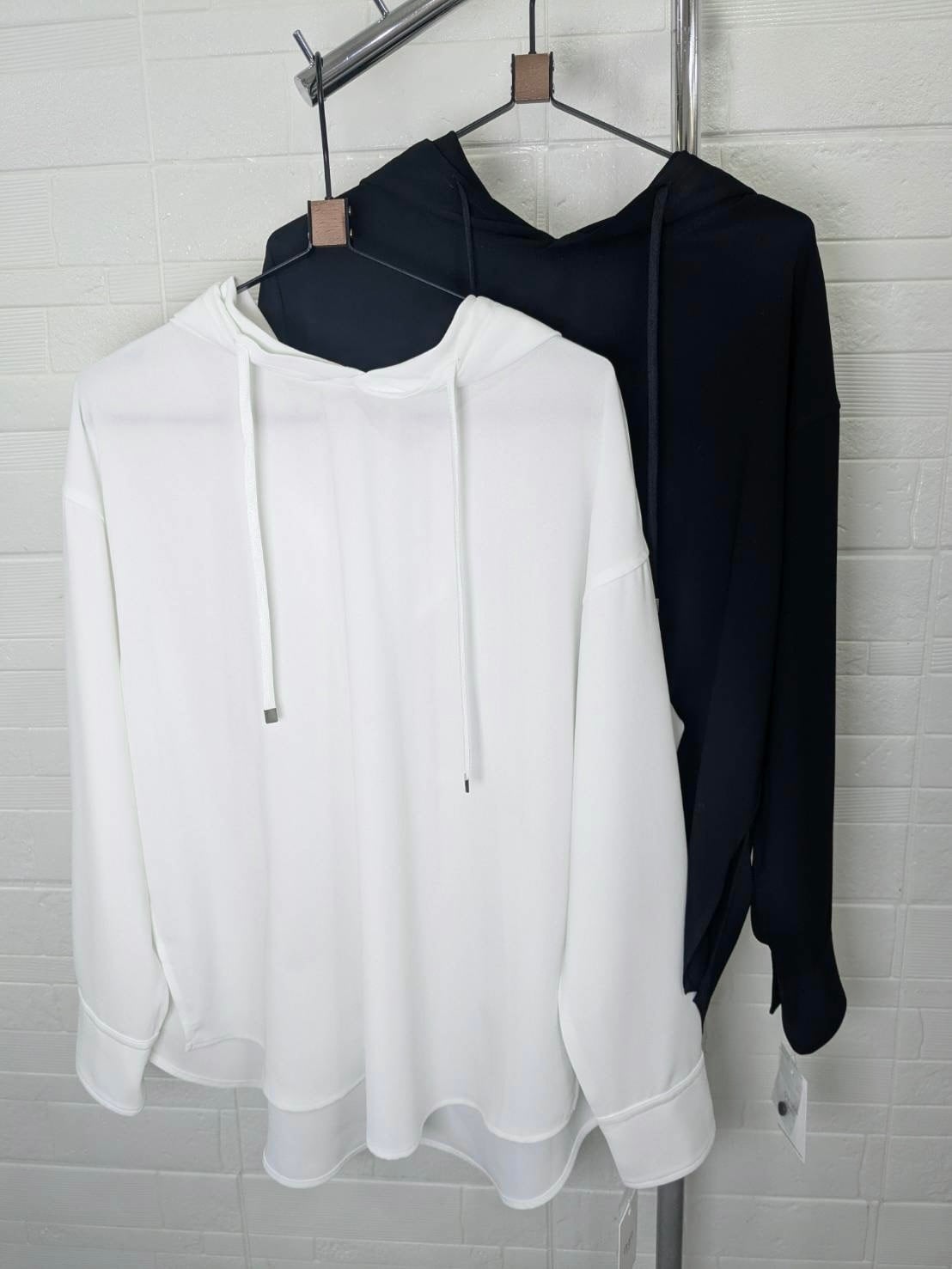 ● ジョーゼット素材を使用したシンプルなデザインのパーカー。軽くてとろみ感があり柔らかな肌触りが特徴で、ロング丈で裾にリブが施されたおしゃれなアイテムです。普段使いからアウトドアまで幅広く活躍するアイテムです。