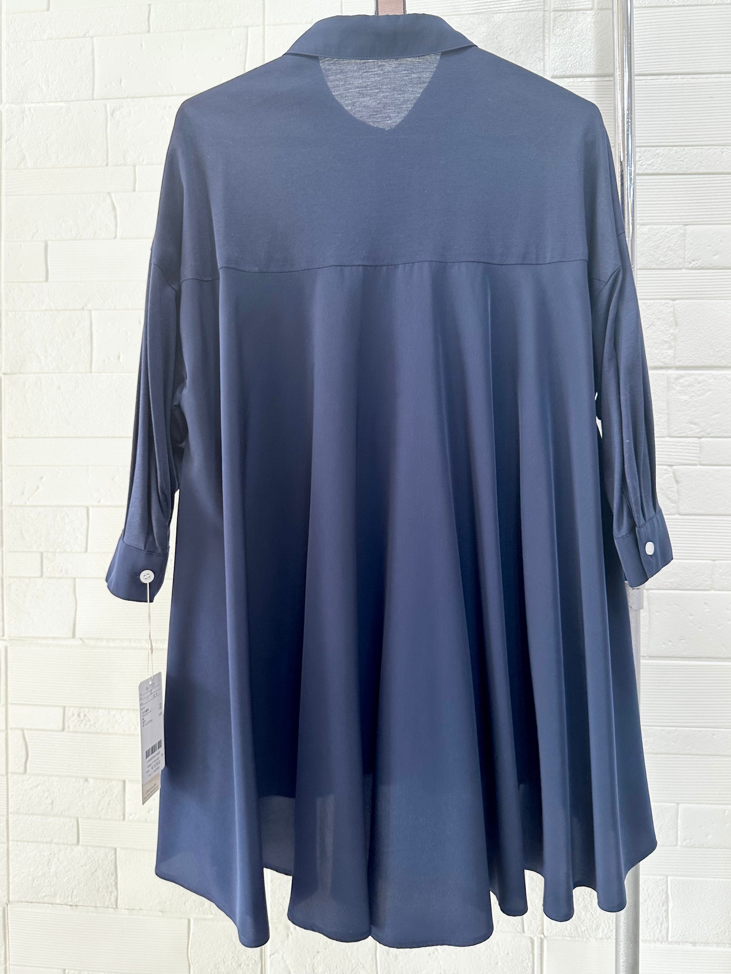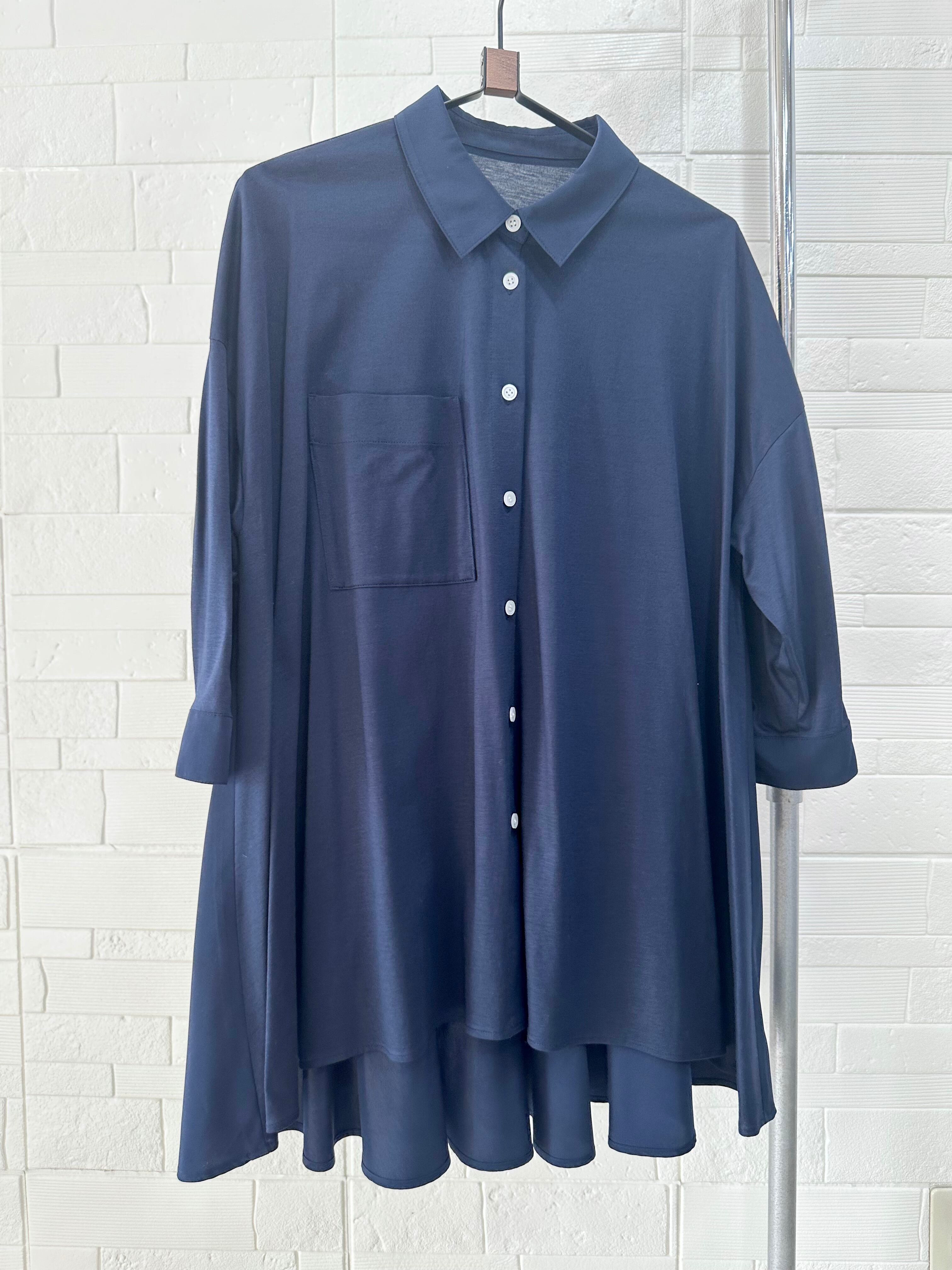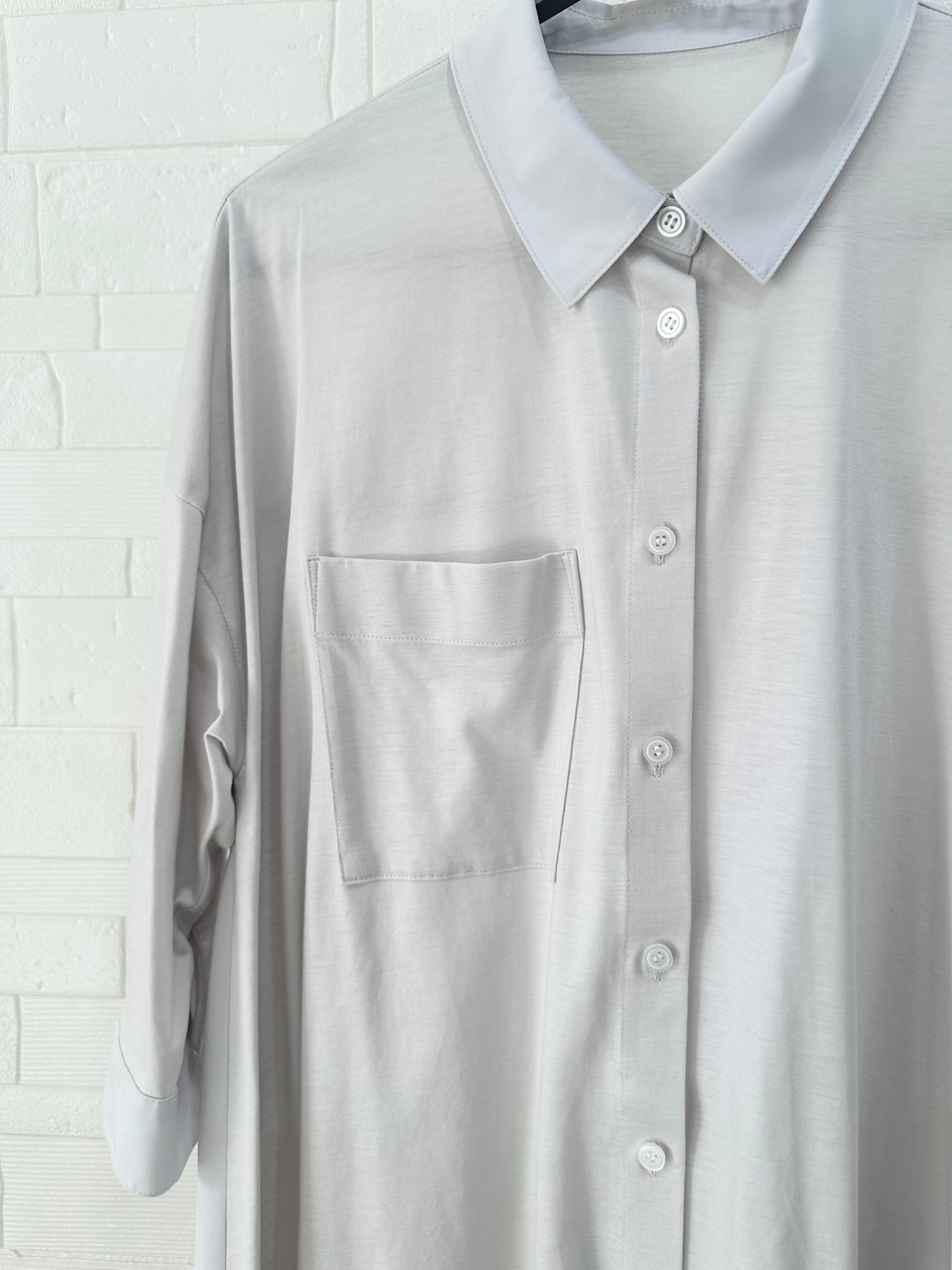 前身頃ヨーク部分は通気性も良く繊細で柔らかなカットソー、背面切り替えはシルクタッチなジョーゼットの組み合わせが織りなす、洗練されたデザインです。シルエットは動くたびにふんわりと揺れ女性らしさを引き立てます。落ち感があり七分袖で体型カバーにも◎さっと羽織れてカジュアルながらも、きちんと感を忘れない一枚で、オンオフ問わず着用可能✨涼しくベタつかない素材なので暑い夏でも日よけアイテムとしても活躍すること間違いなしです!