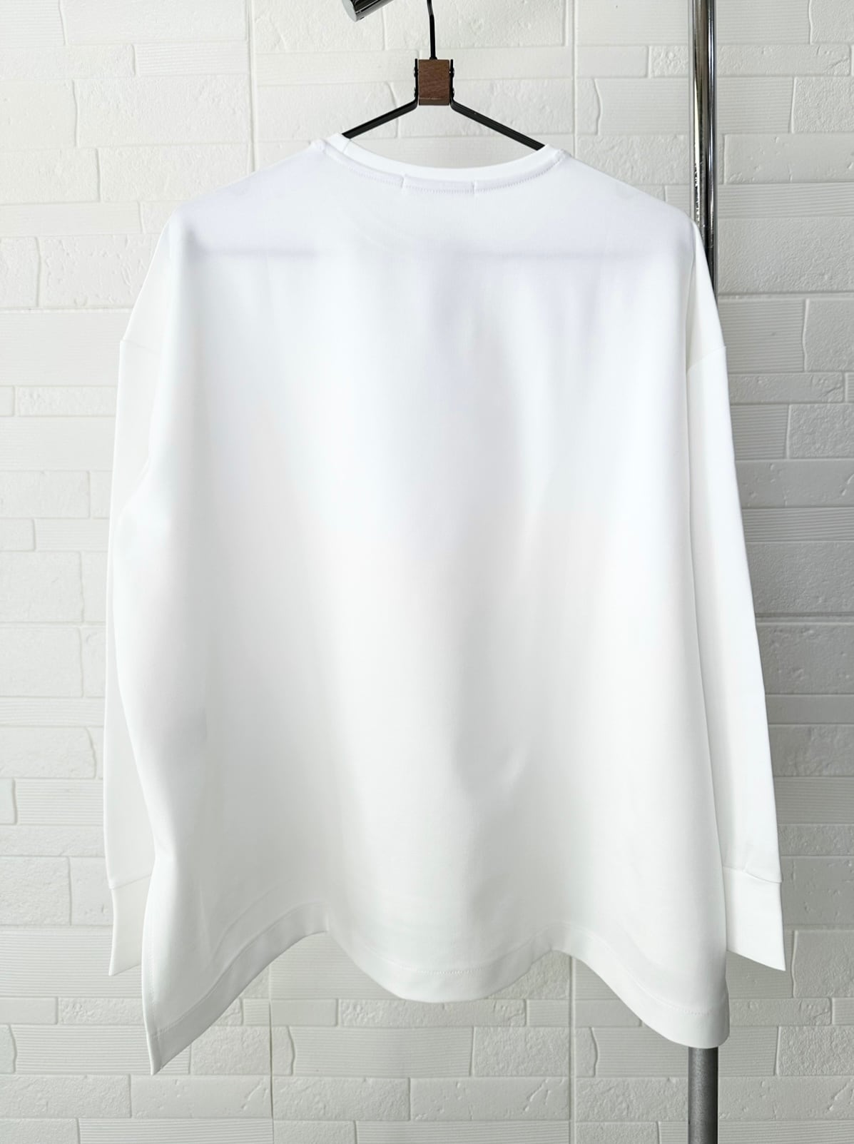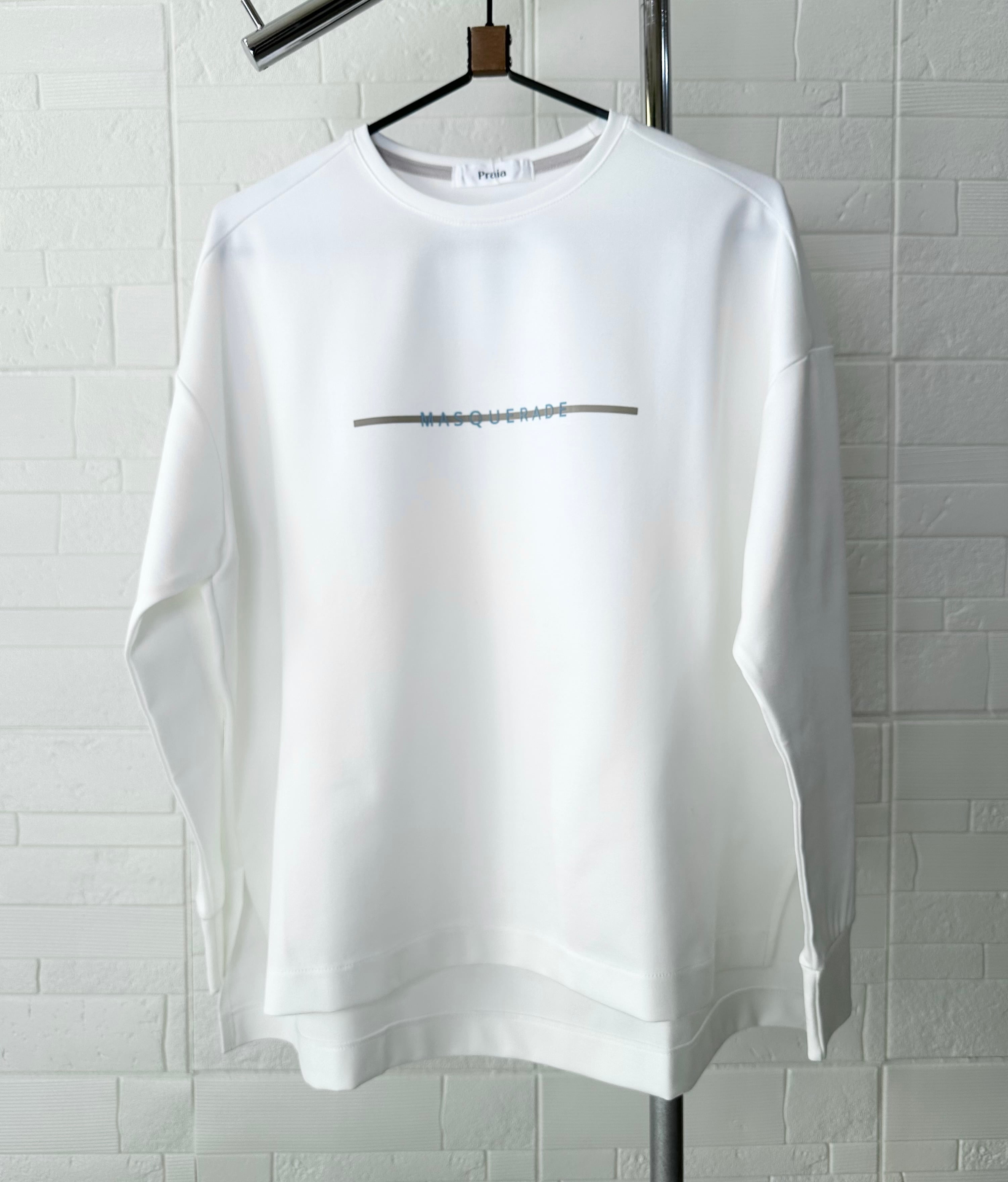 ラインの上から小さめの立体的なロゴデザインは大人カジュアルスタイルを楽しめます。ゆったりとした身幅でサイドにスリットが入り、スッキリとした印象を与えインスタイルもしやすくコーディネートを楽しめます。
