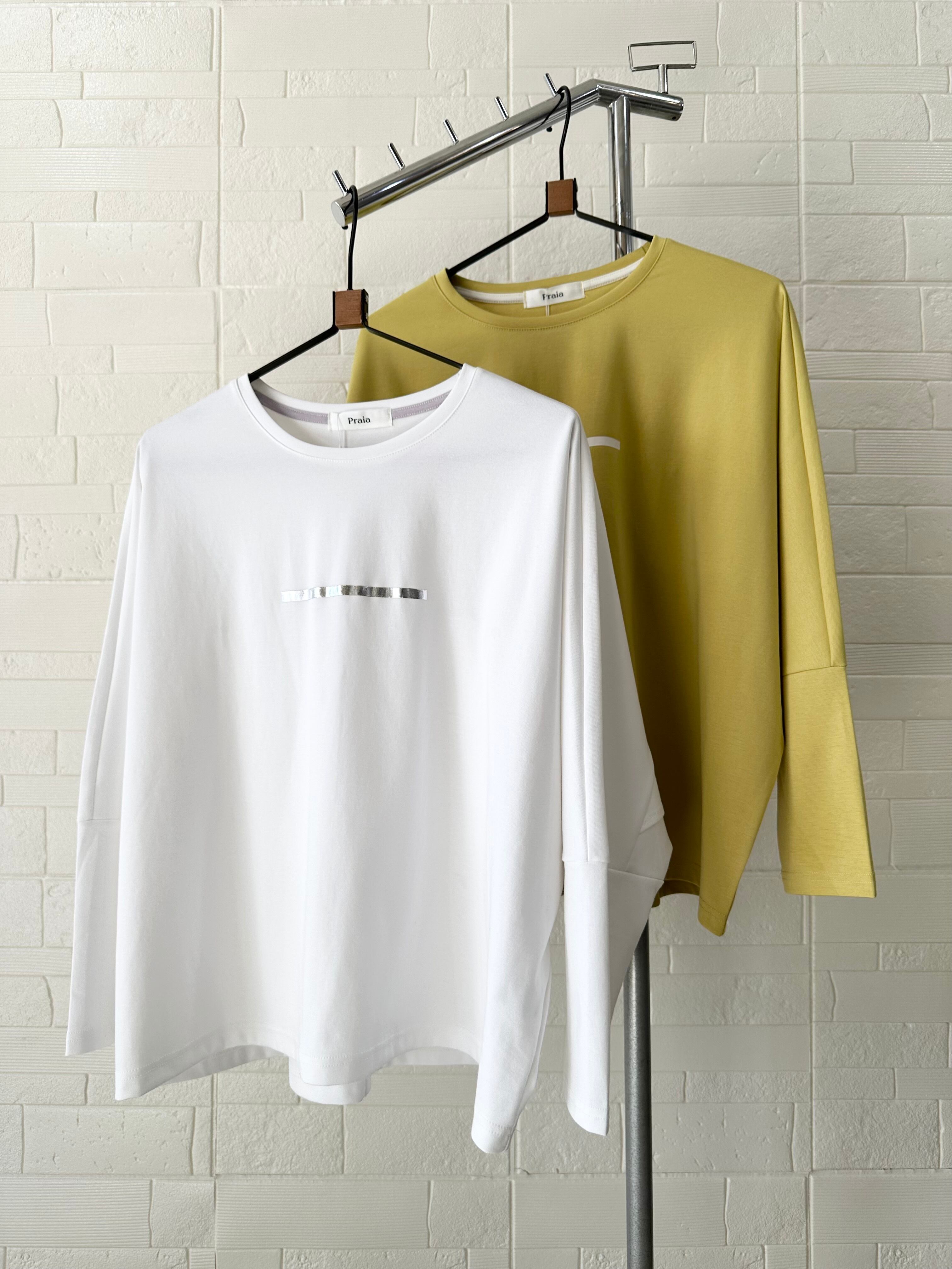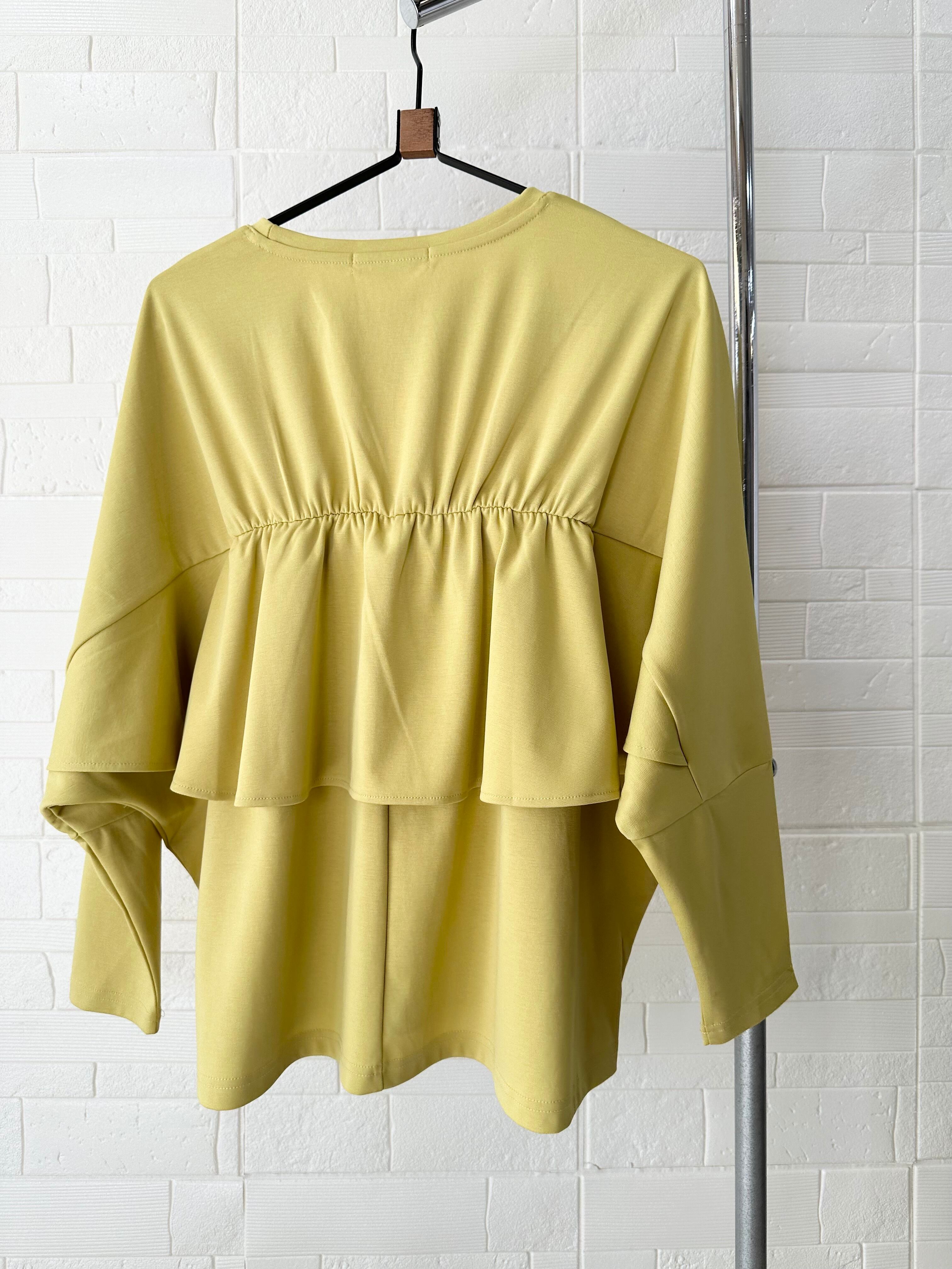 ●バックフリルデザインが可愛い✨サラサラとした伸縮性もある着心地で暖かくなる季節も一日中快適に過ごせます。胸元のラインがさりげなくおしゃれで、身幅ゆったり、ドルマンシルエットがリラックスした雰囲気を演出しスカートやワイドパンツと相性良い丈感です✨